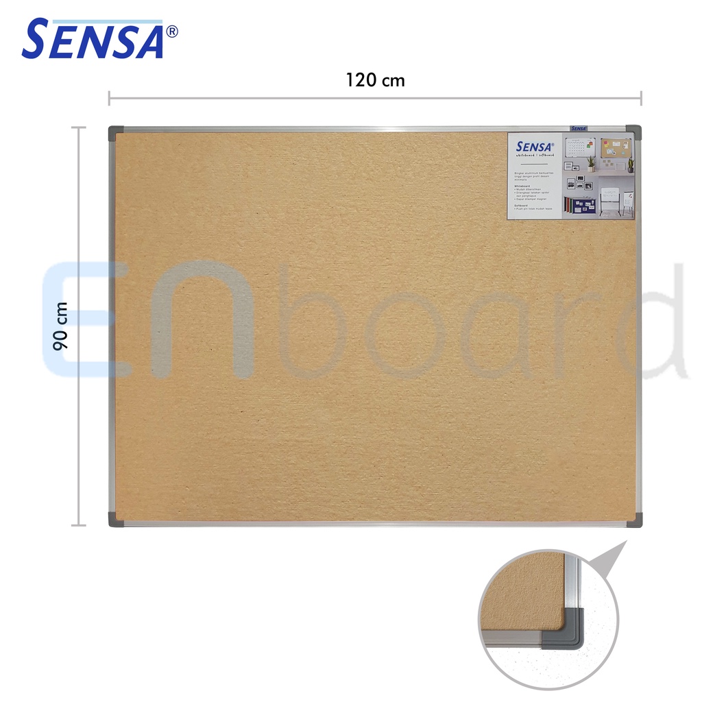 Softboard / Pin Board / Cork Board / Papan Pengumuman / Mading Gantung Polos Sensa 90 x 120 cm