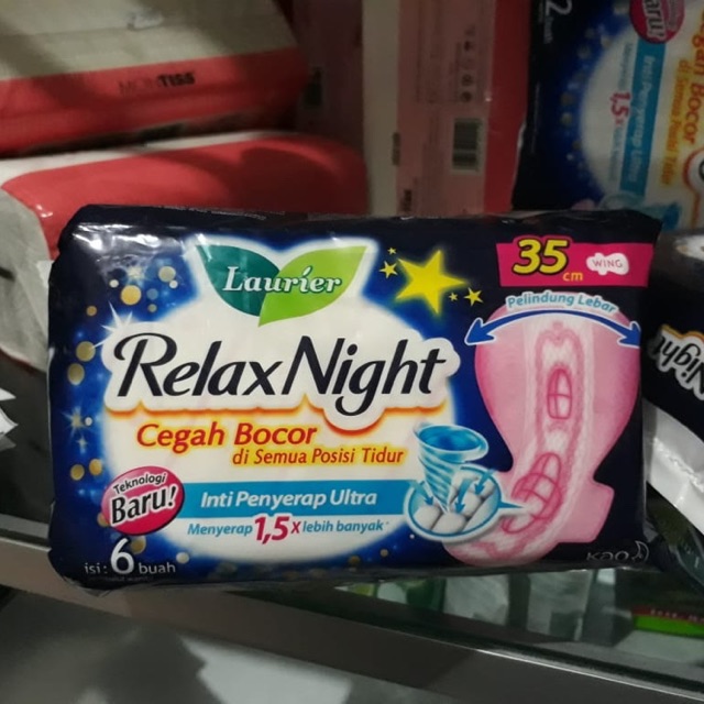 Softex laurier relax night pembalut isi 6 ukuran 35cm sayap / wings