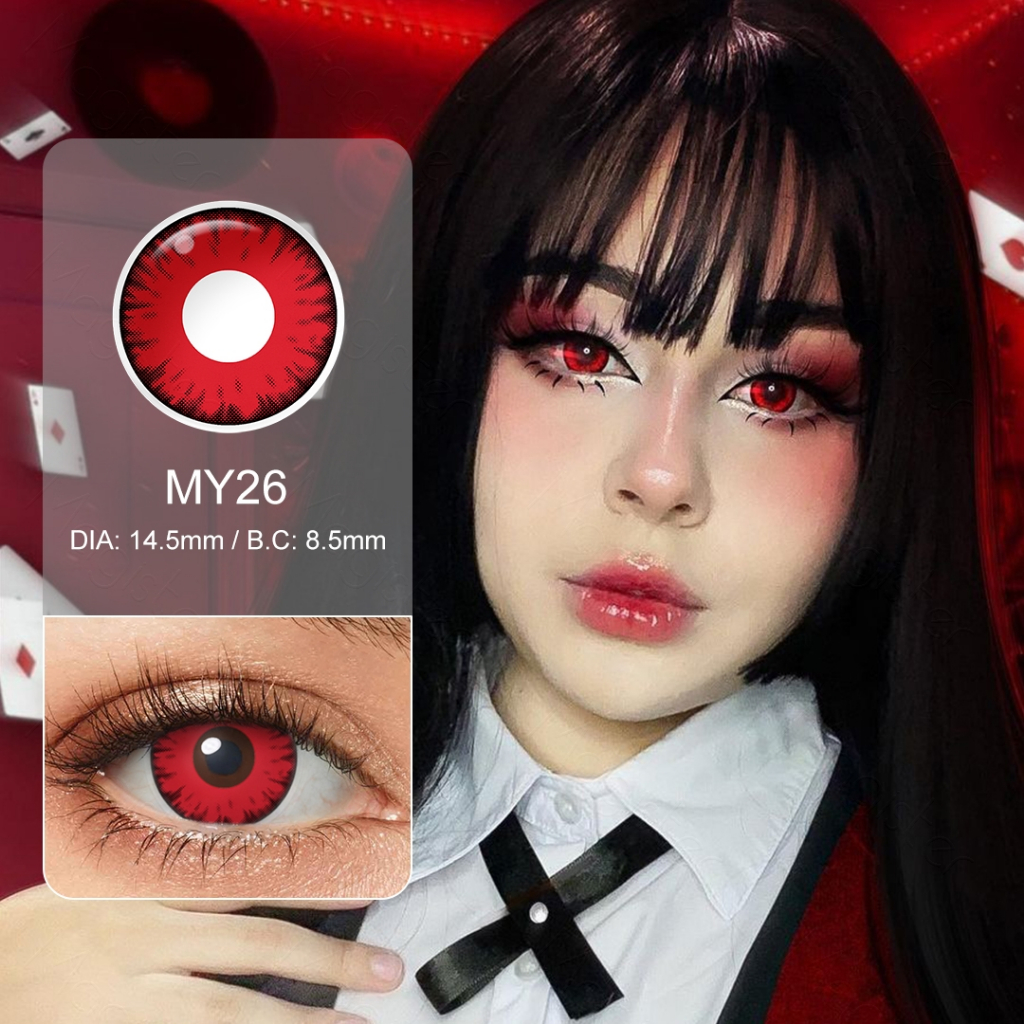 Softlens Cosplay Kartun Anime Naruto Halloween Cosplay Softlen Lensa Kontak Putih Merah hitam14.50MM