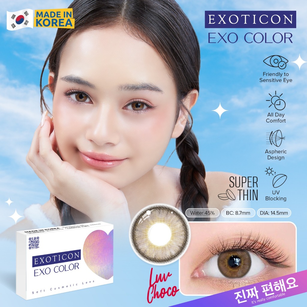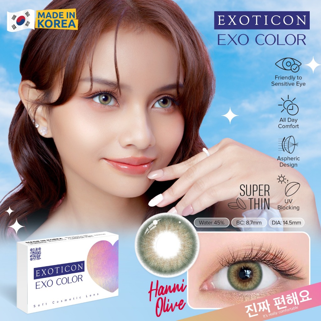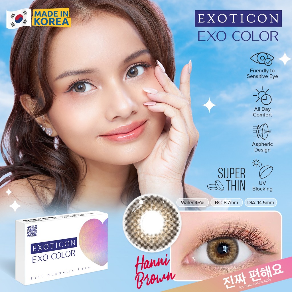 Softlens EXO COLOR 14,5 MM Normal & Minus (-0,50 S/D -10,00) By X2 Exoticon / Soflen Exo Color / Exo Color By X2 Exoticon / Softlens Natural / Soflen Natural / Soflen / Softlen / Soflens / Bebe Light Grey Light Brown Hanni Brown Olive Luv Grey Brown