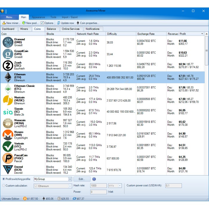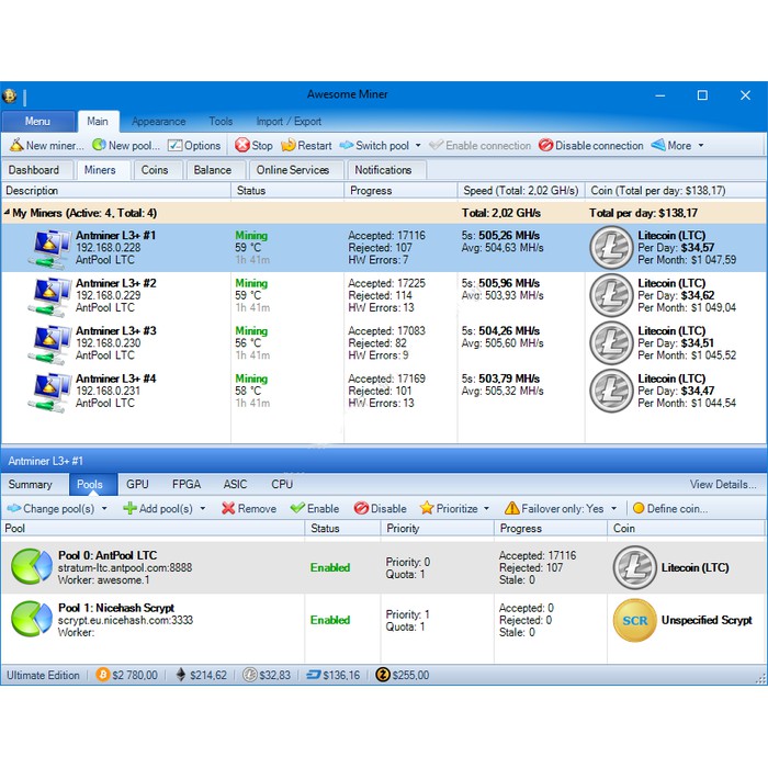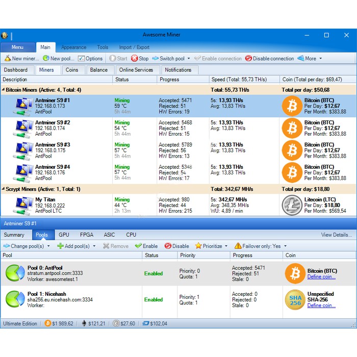 Software Awesome Miner Mining Cryptocurrency Bitcoin Ethereum Terbaru