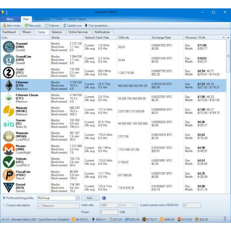 Software Awesome Miner mining cryptocurrency bitcoin 4.2.7 Ultimate