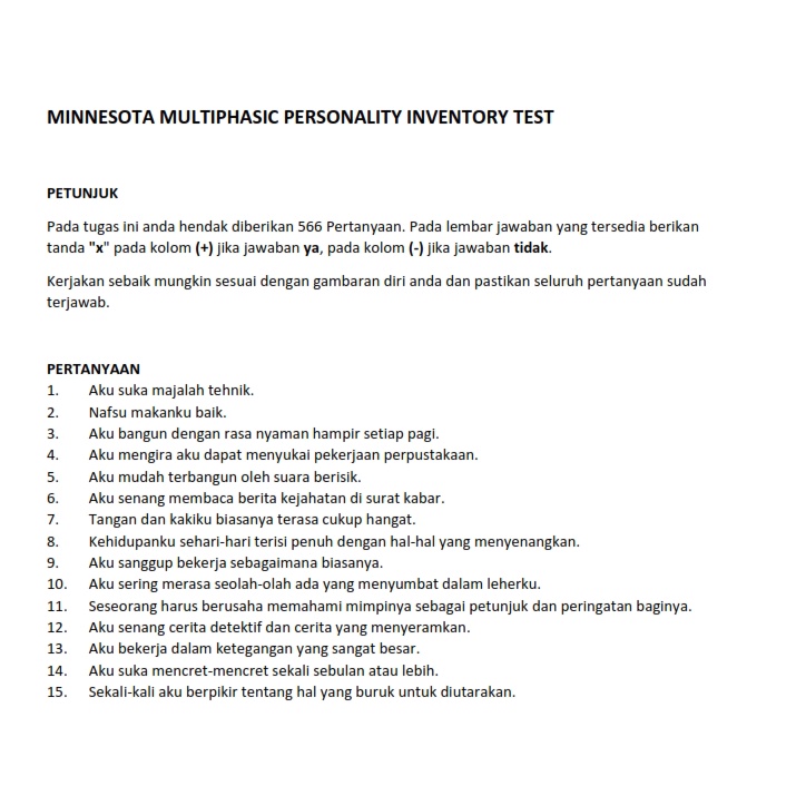 Software Psikotes MMPI (Minnesota Multiphasic Personality Inventory Test)