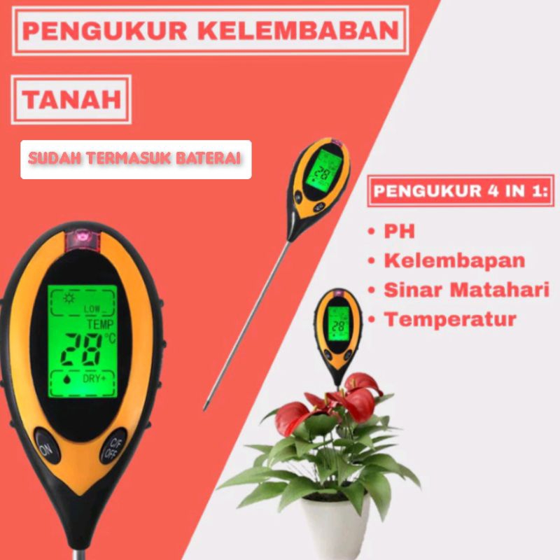 Soil Mosture Meter 4 in 1 / Pengukur Temperature & Kelembapan Tanah