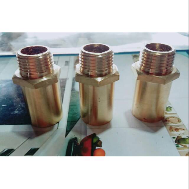 Sok drat luar kuningan ukuran 1/2" panjang/ sock nipple / nepel