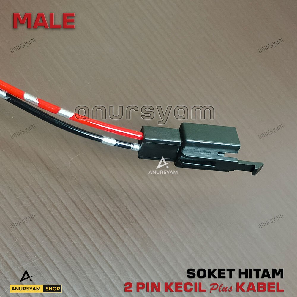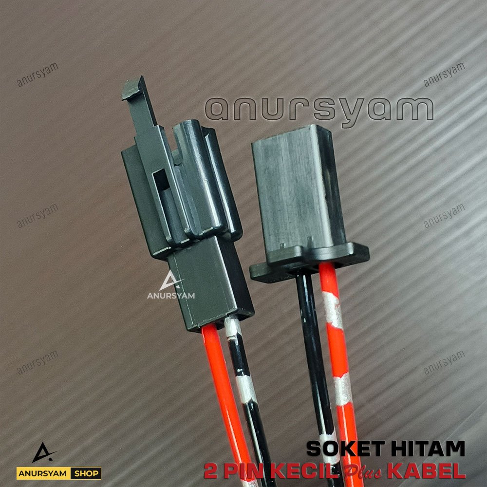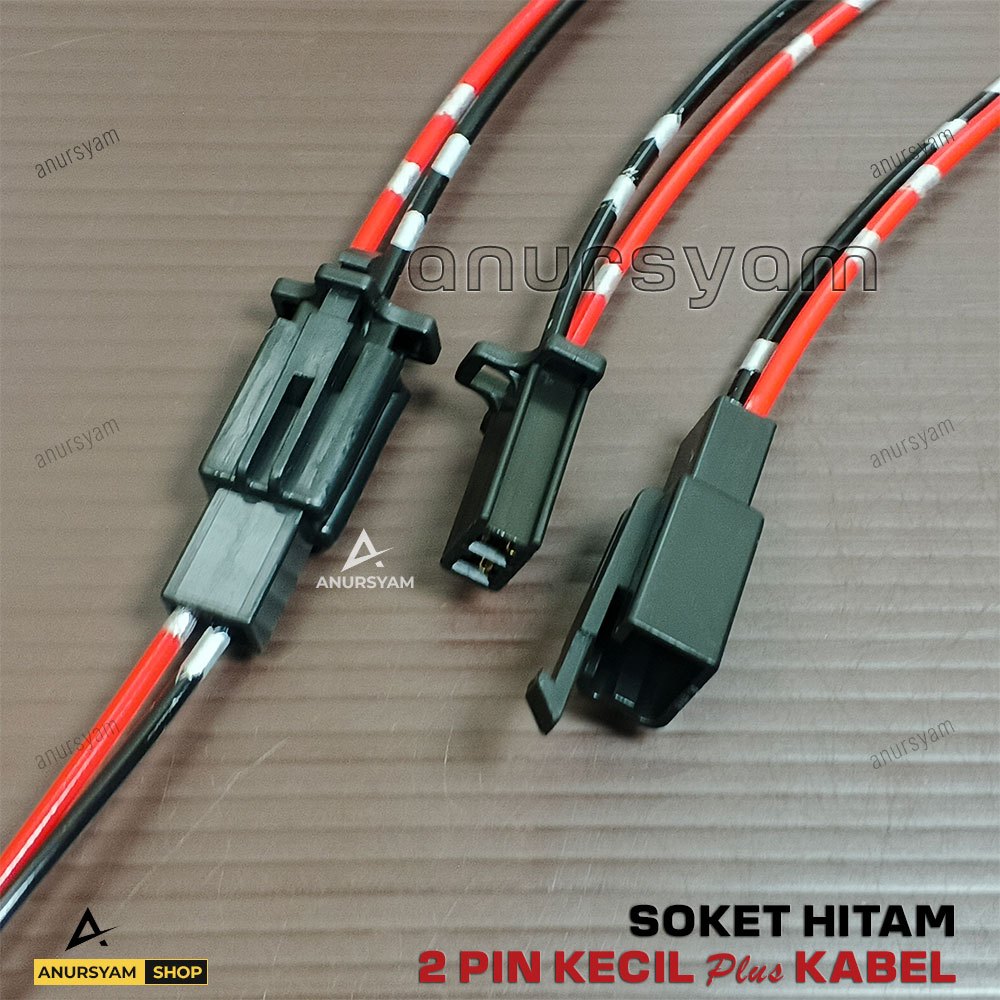 Soket 2 Pin Hitam / Socket Sambung Kabel 2 Pin Kecil Plus Kabel Bintik