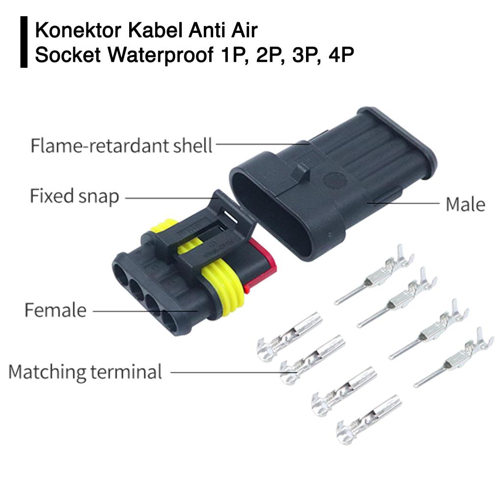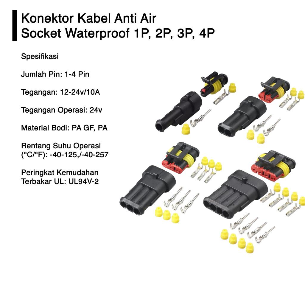 Soket Konektor Kabel Anti Air Socket Waterproof 1P, 2P, 3P, 4P
