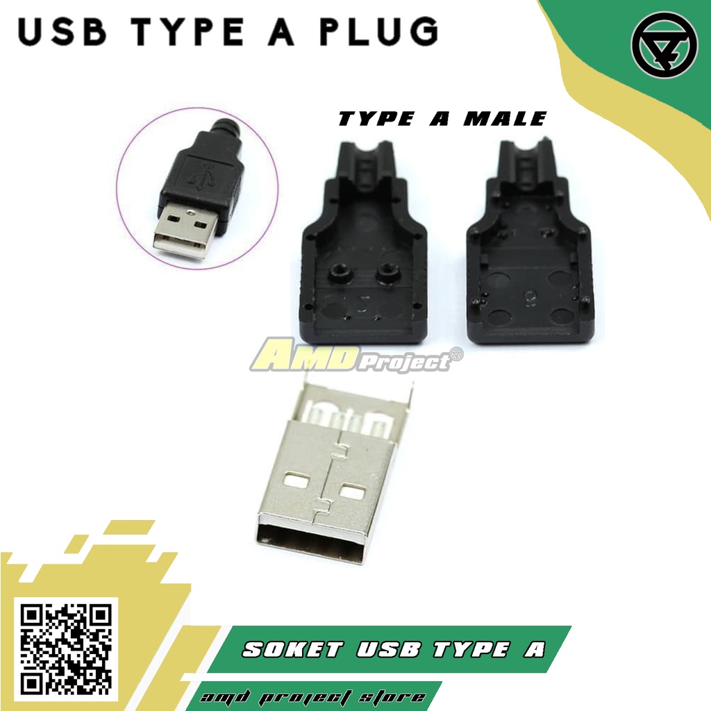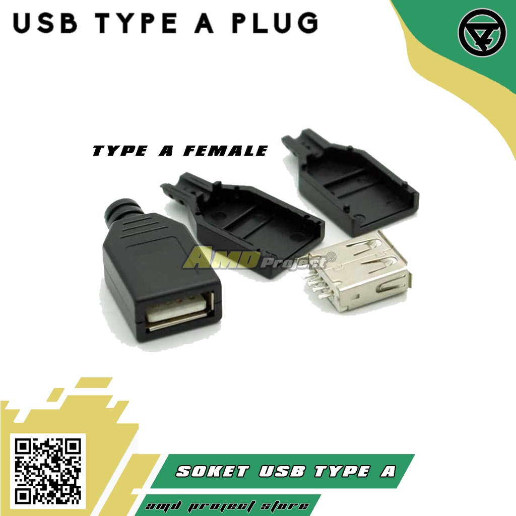 Soket USB 4 Pin Plug In Konektor Socket Connector Male Female Kabel Type Tipe A