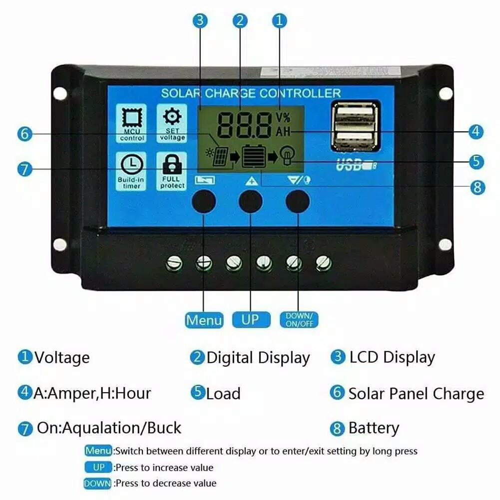 Solar Charge Controller 10A LCD LED Display Solar cell PWM 12V 24V USB Panel Surya Charger