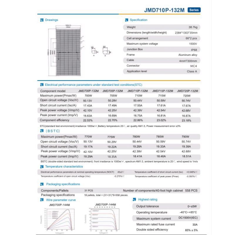 Solar Panel 710wp Mono Crystalline Pv Module 710W Mono Bifacial