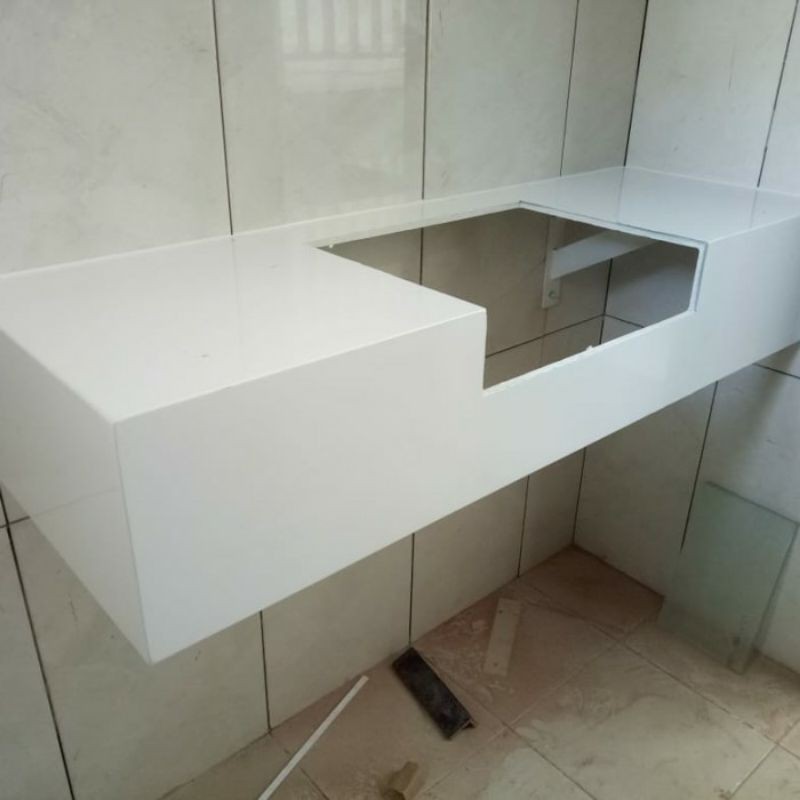 Solid Surface Meja Washtafel Top Table Putih Polos Custom