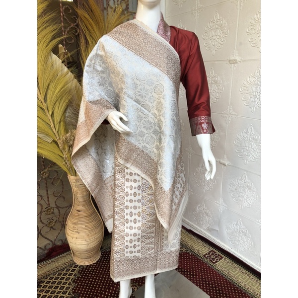 Songket Lepus Putih Rakam Tembaga ORI / Songket Tenun Palembang asli Tenun Tangan. (ilham Songket) diskon