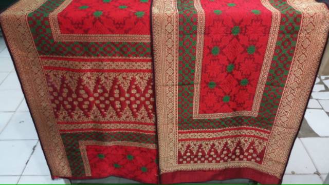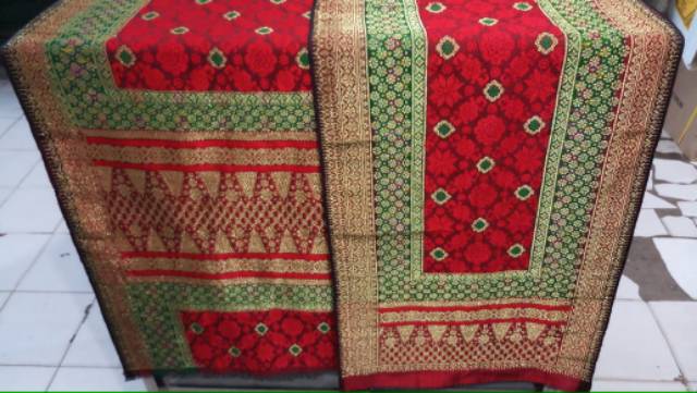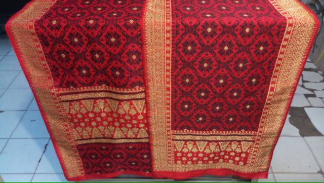 Songket tenun asli palembang motif bunga cina kandang kristal mewah elegan
