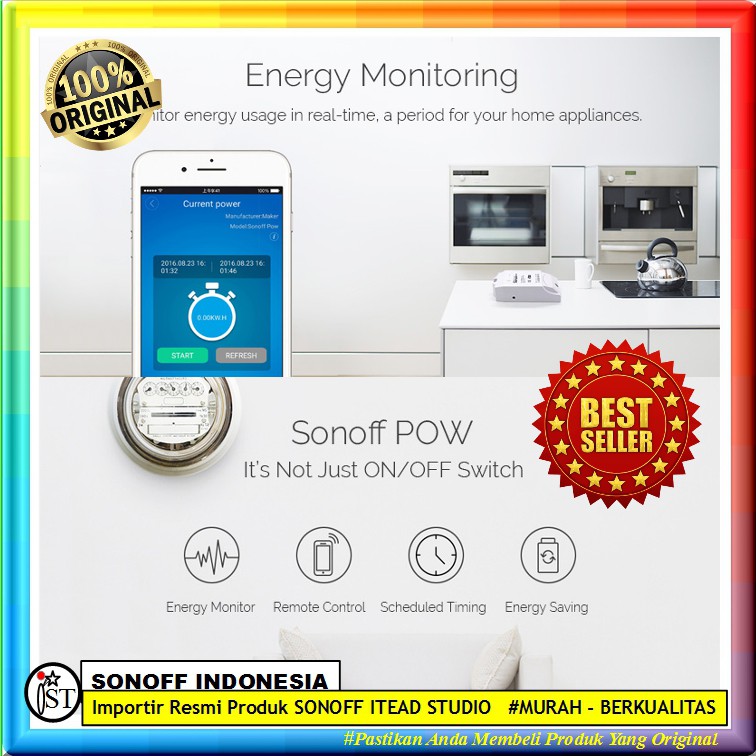 Sonoff POW R2 WIFI Power Consumption Monitor Wireless Switch Smart Home Watt Meter Saklar Android