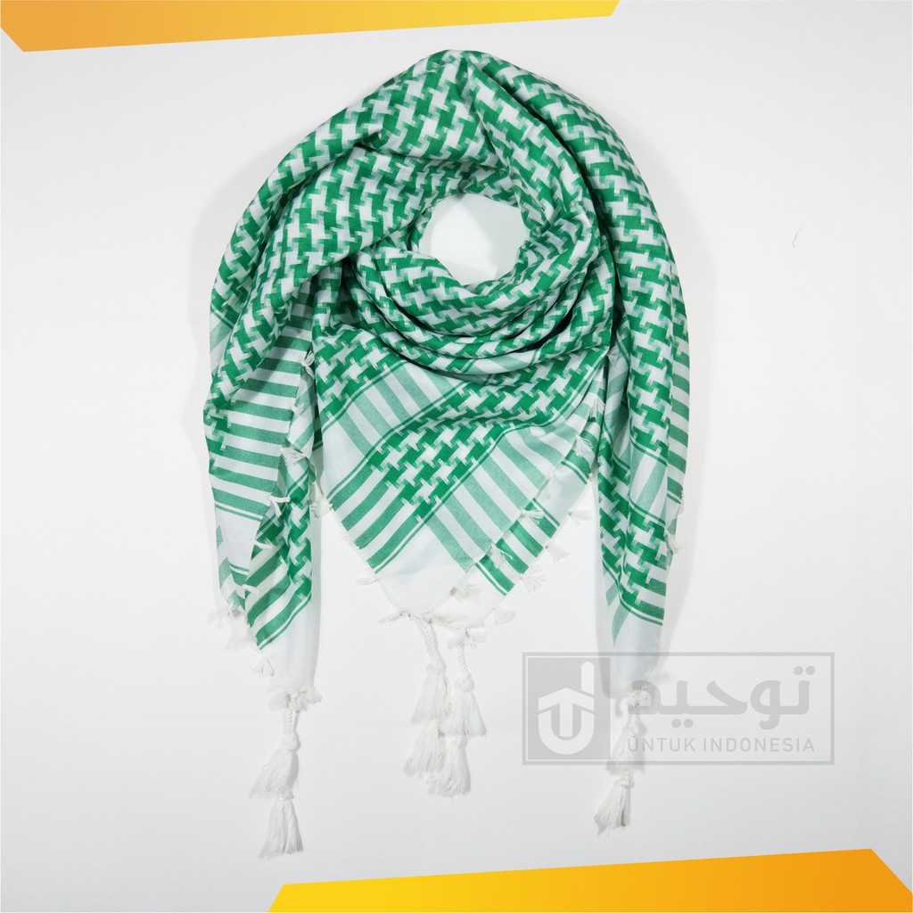 Sorban Shemagh Almas Arab Palestin Sorban Almina Motif Hijau Putih