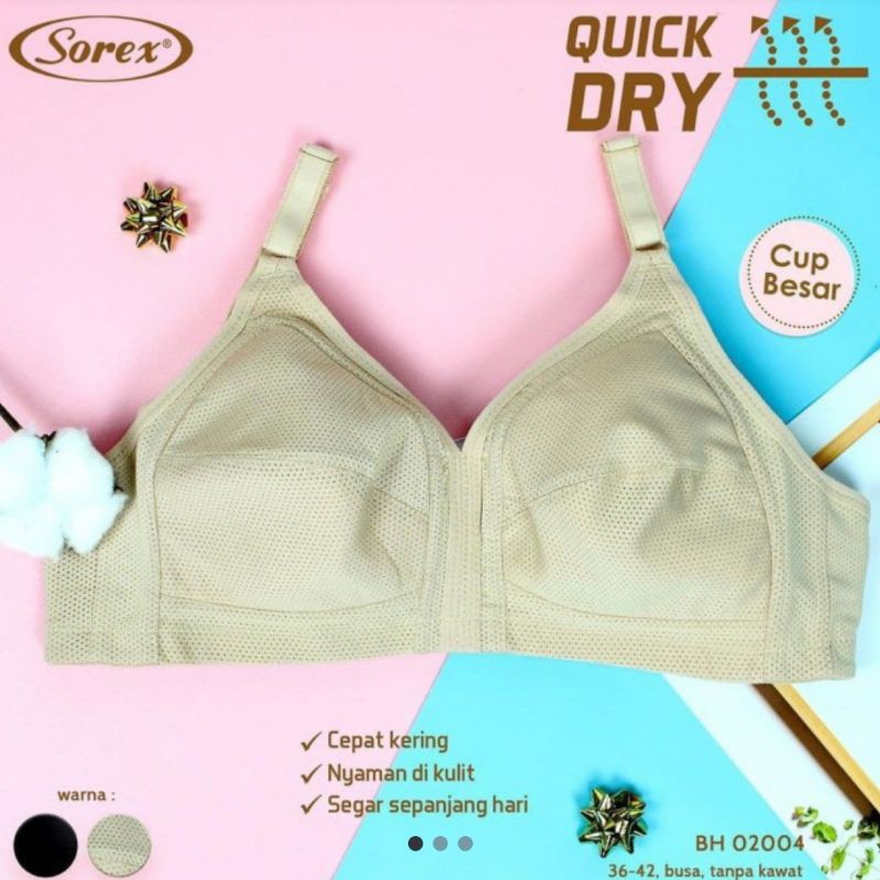 Sorex - BH/Bra Sorex Quick Dry/Cepat Kering Kode 02004 (Bahan Katun Spandek, Tanpa Kawat, Busa Tipis, Cup Besar)
