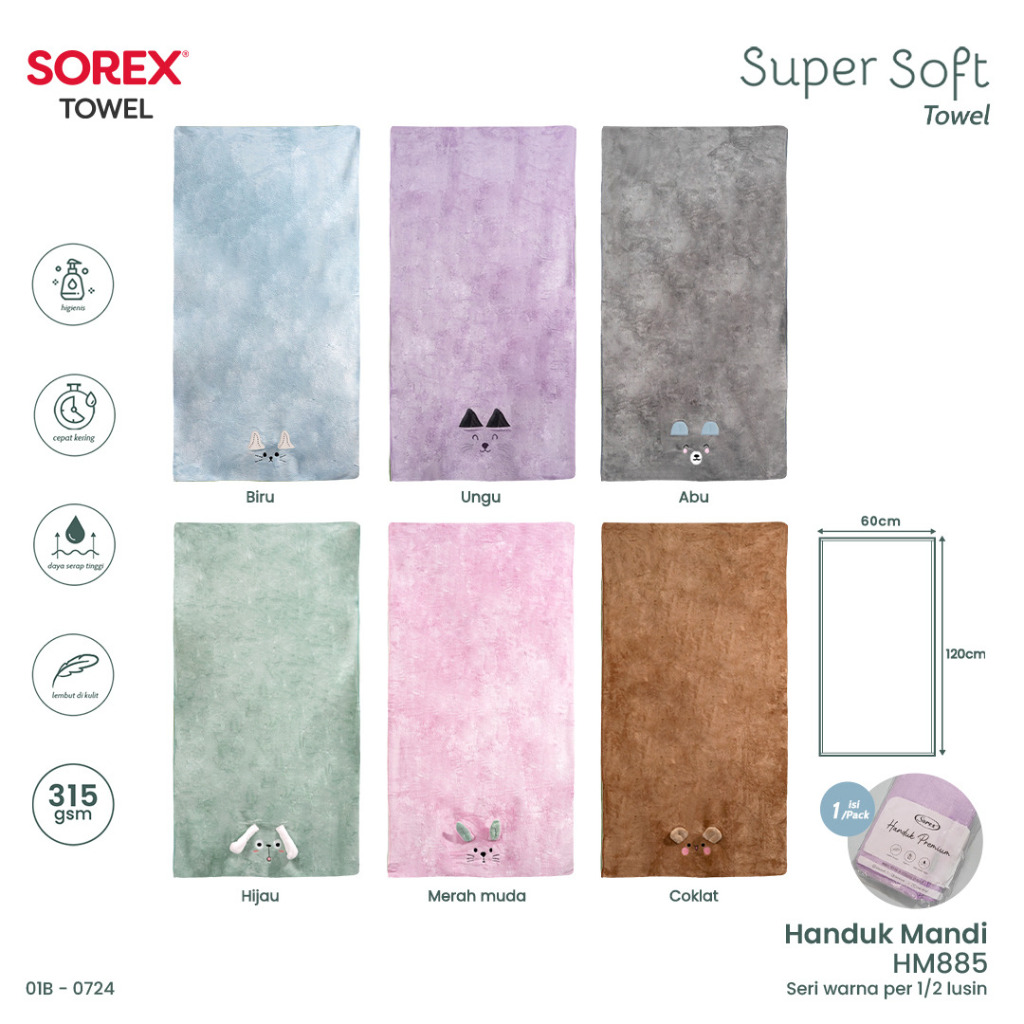 Sorex Handuk Mandi Premium Dewasa Dan Anak Microfiber Towel Lembut Halus Daya Serap Tinggi HM 885
