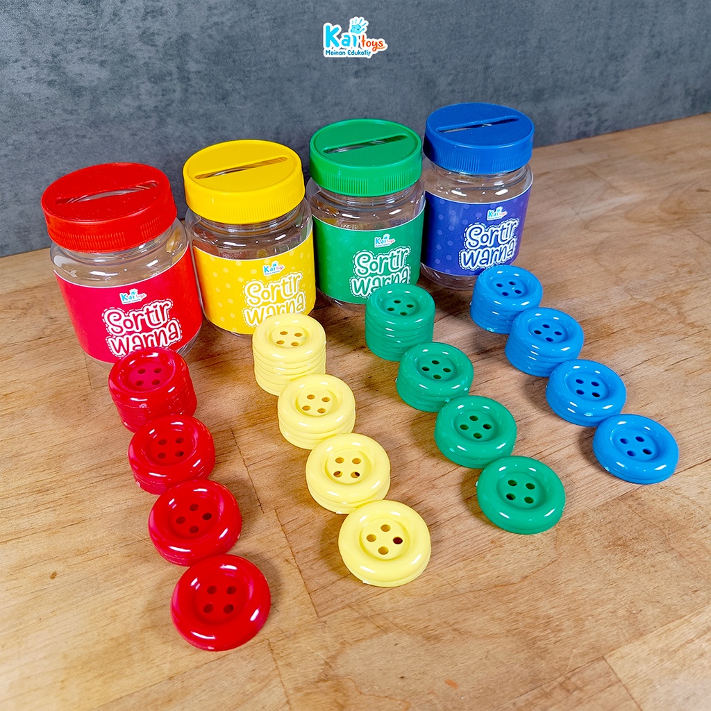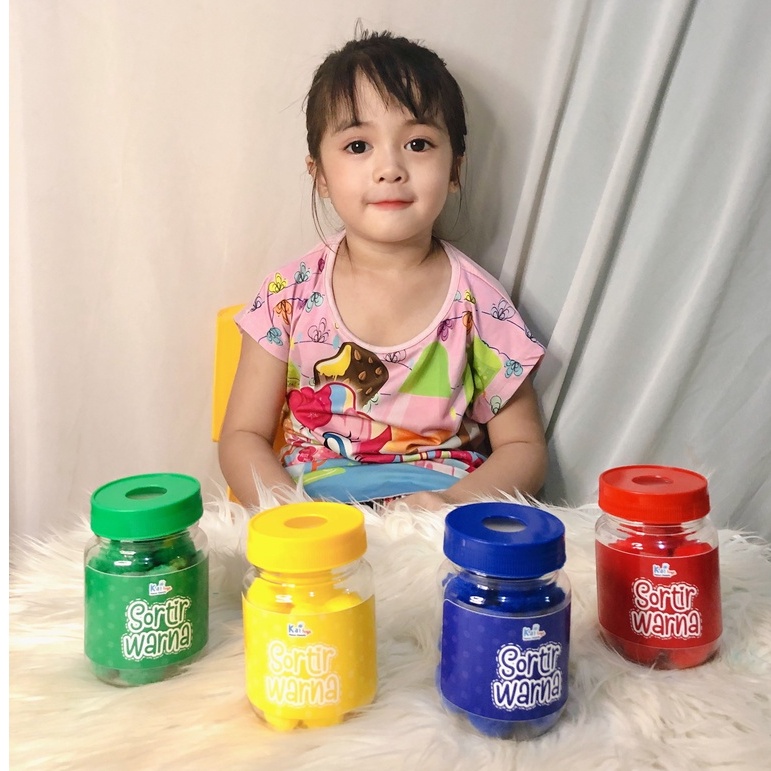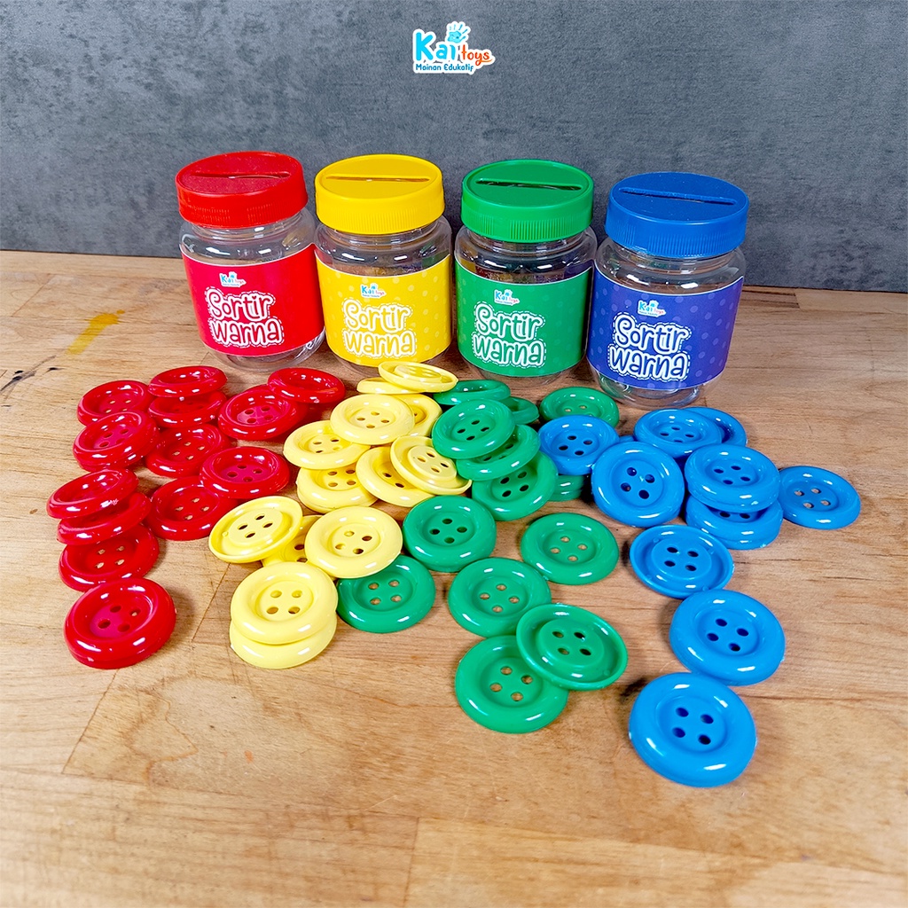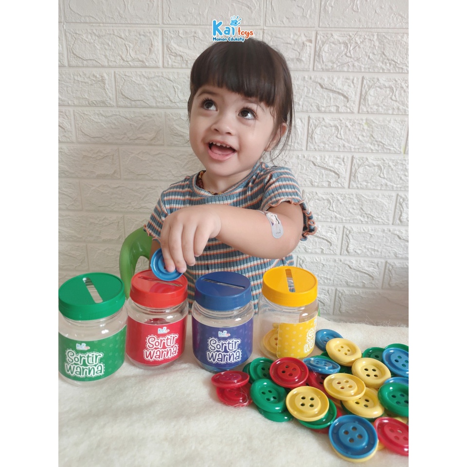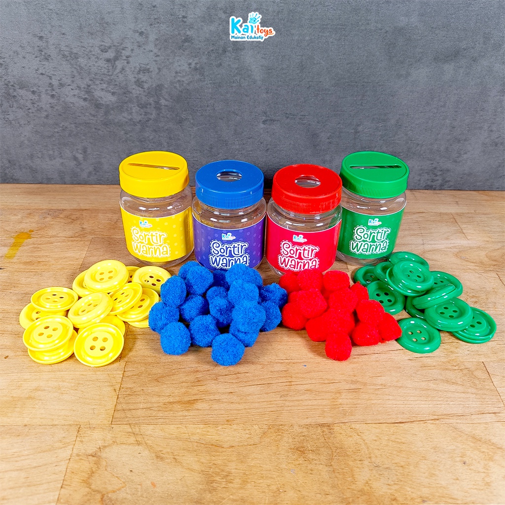 Sortir Kancing / Sortir Pompom / Sorting Color / Mainan Montessori Edukasi Mengenal Warna Busy Jar preschool activity Mainan Edukasi Anak 2 tahun Melatih Motorik Halus