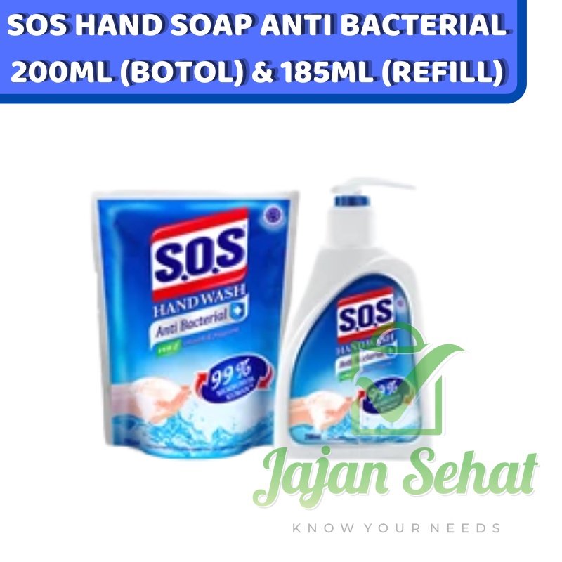 Sos Hand Soap Anti Bacterial 200ml (BOTOL) & 185ml (REFILL)