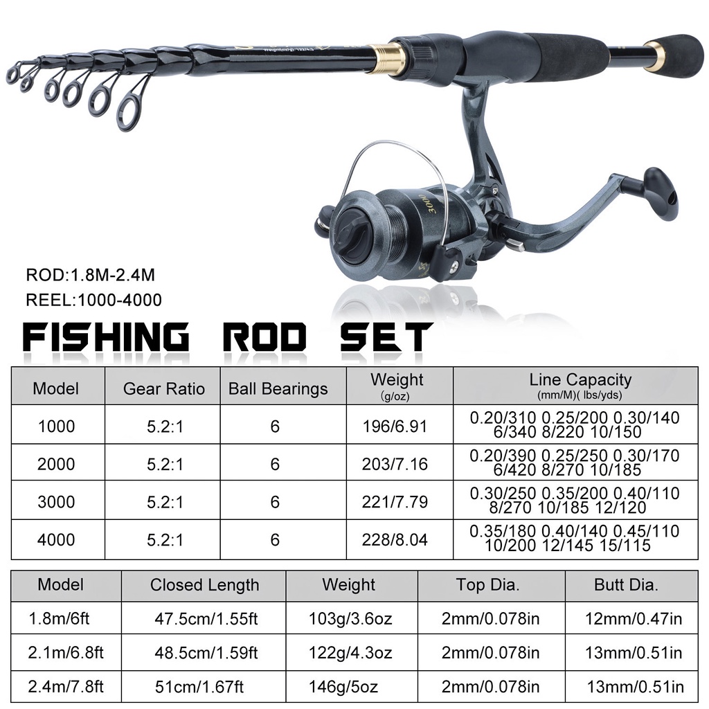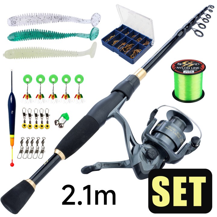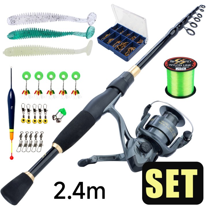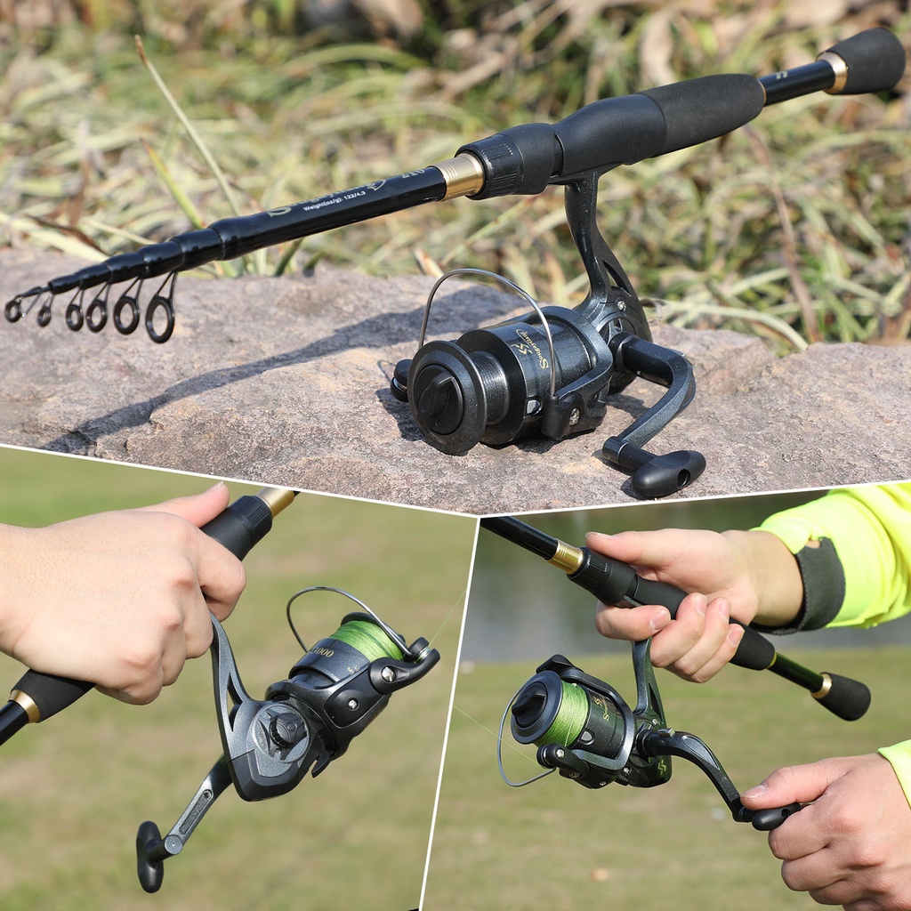 Sougayilang Joran Pancing Set 1.8M-2.4M Fishing Rod Teleskop Design Carbon Fiber Joran Pancing And Gear Ratio 5.2:1 Spinning Reel Pancing 1000-4000 Modle Gulugan Pancing Joran Pancing Set