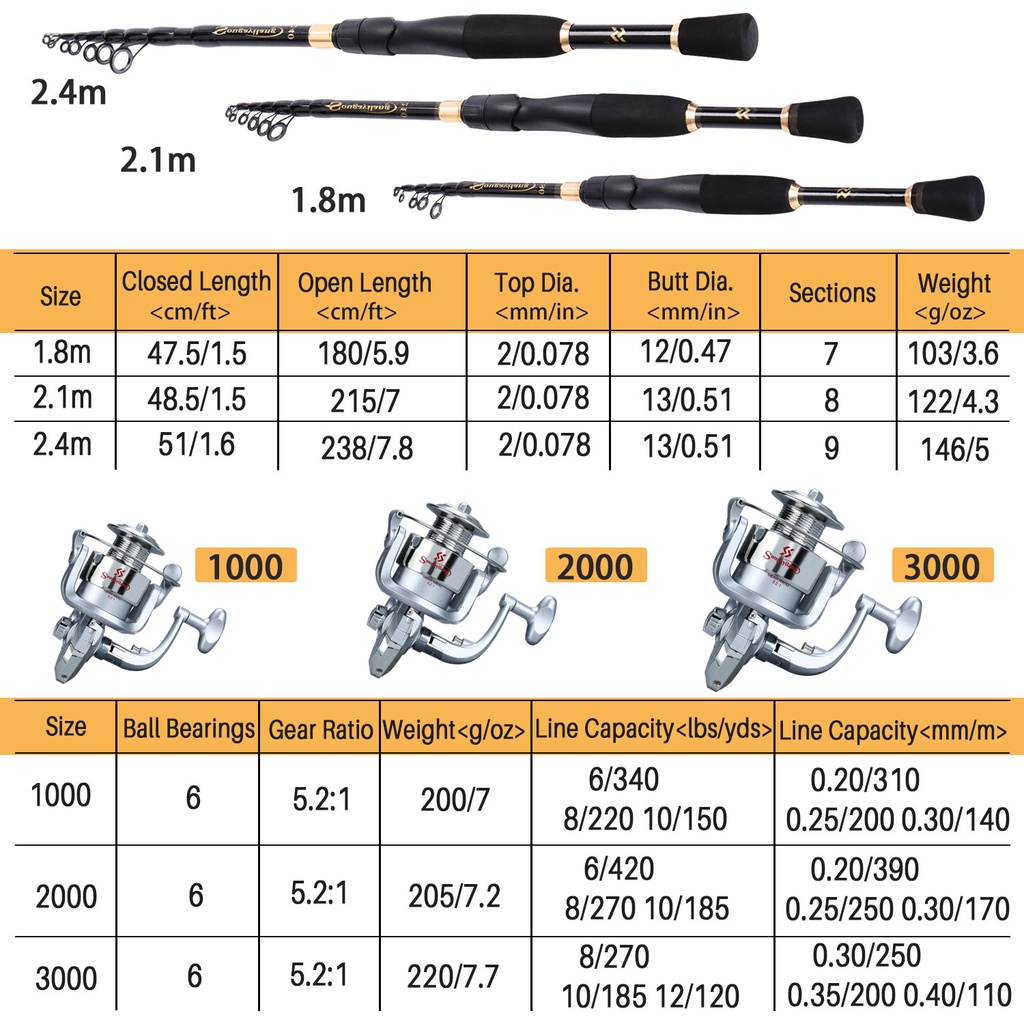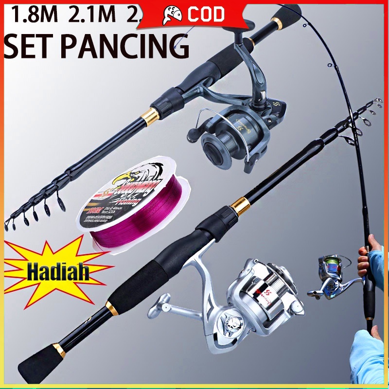Sougayilang Joran Tegek Set Pancing pancing 1 set murah 1.8m/2.1m/2.4m joran pancing teleskopik dan set reel pancing ukuran 1000-3000 alat pancing memancing di luar for joran pancing set