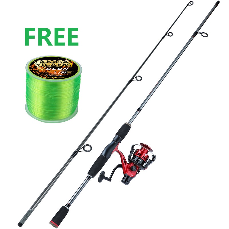 Sougayilang Joran pancingan set lengkap 1.8M joran tegek dan 4BB reel pancing Set Memancing Pancing (Gratis 150 m Fishing Line)