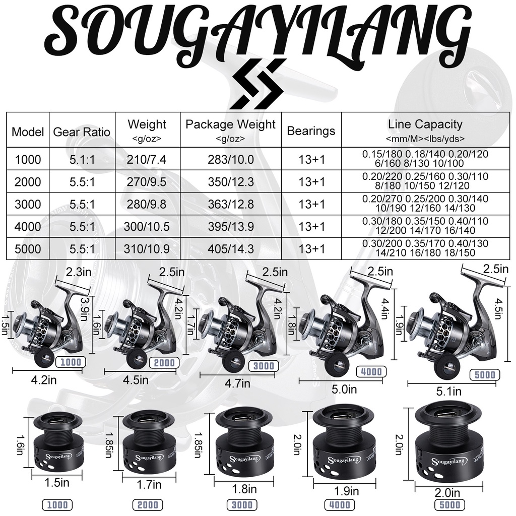 Sougayilang Power Handle Reel Pancing 1000-5000 5.5:1 Rasio kecepatan rotasi 14BB gulungan berputar reel CNC handle alat pancingan