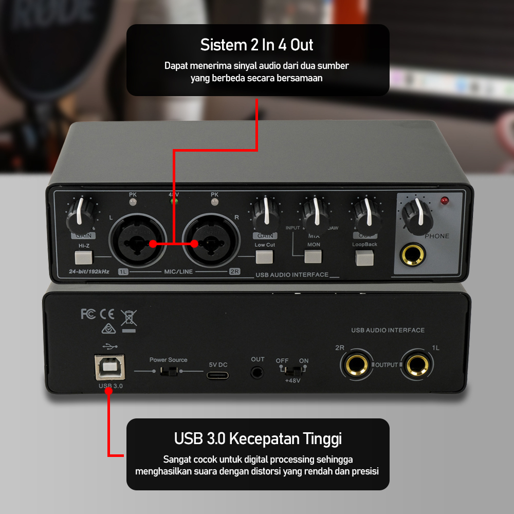 Sound Card External USB Audio Interface Preamp 2 In 4 Out SZKOSTON MD22