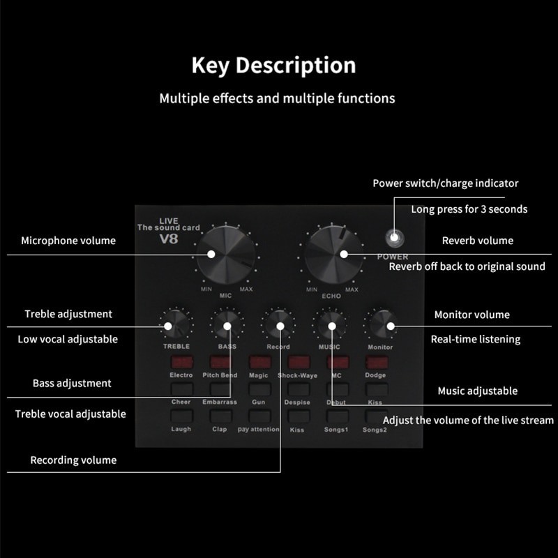 Sound card V8 Mixer SoundCard V8 pc hp Audio USB External Taff Studio Rekam Vlog Taffware v8u Gs8