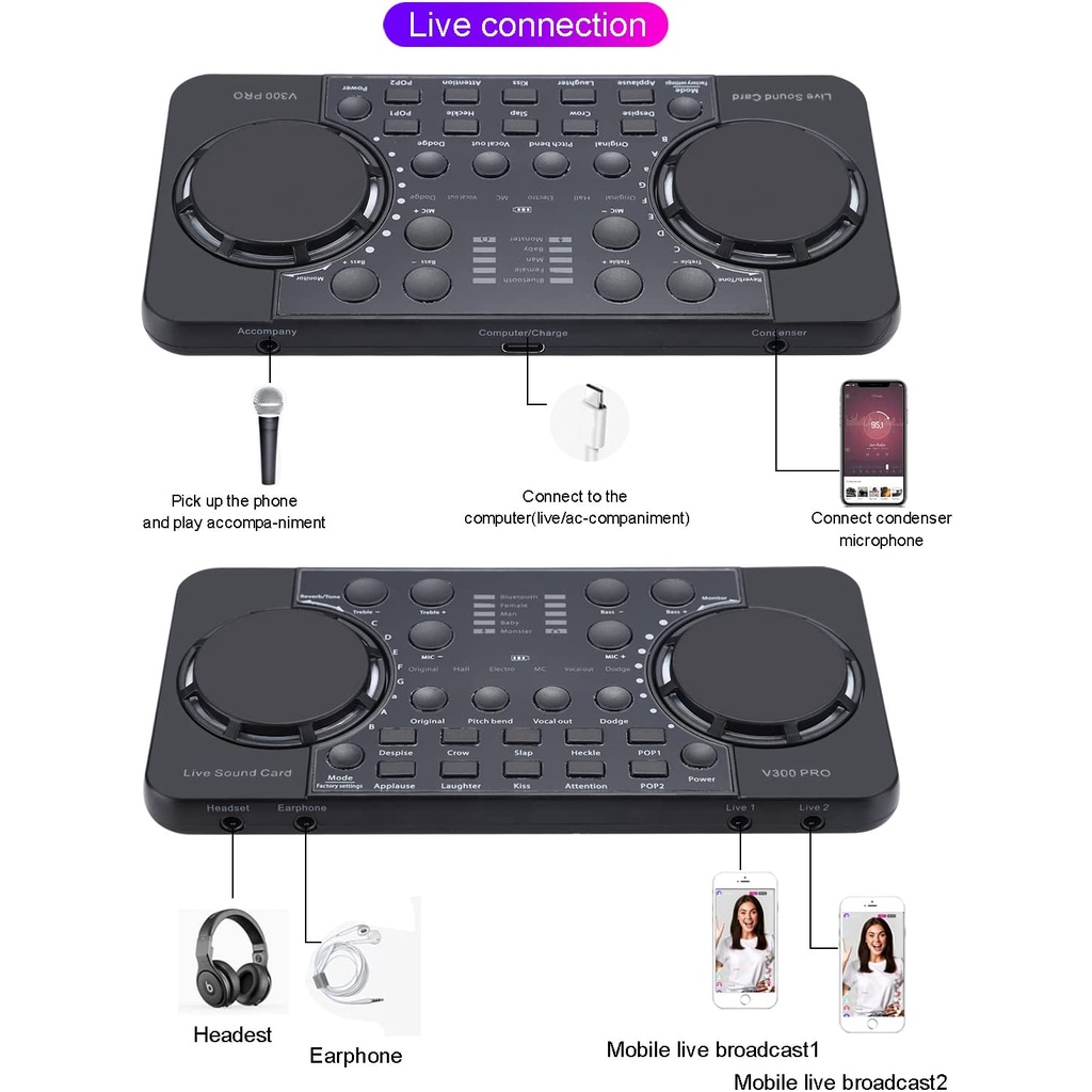Soundcard V300 Pro Audio Bluetooth USB Live Mixer Broadcast