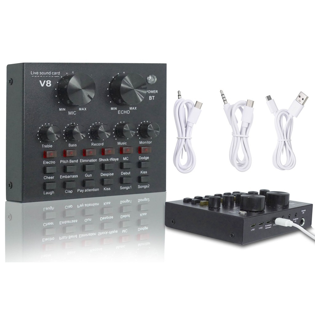 Soundcard V8 Usb Sound card Mixer Audio Mini Bluetooth Amplifier Board Audio USB External Sound Card Live Broadcast Adapter untuk HP PC Mac Karaoke Smule
