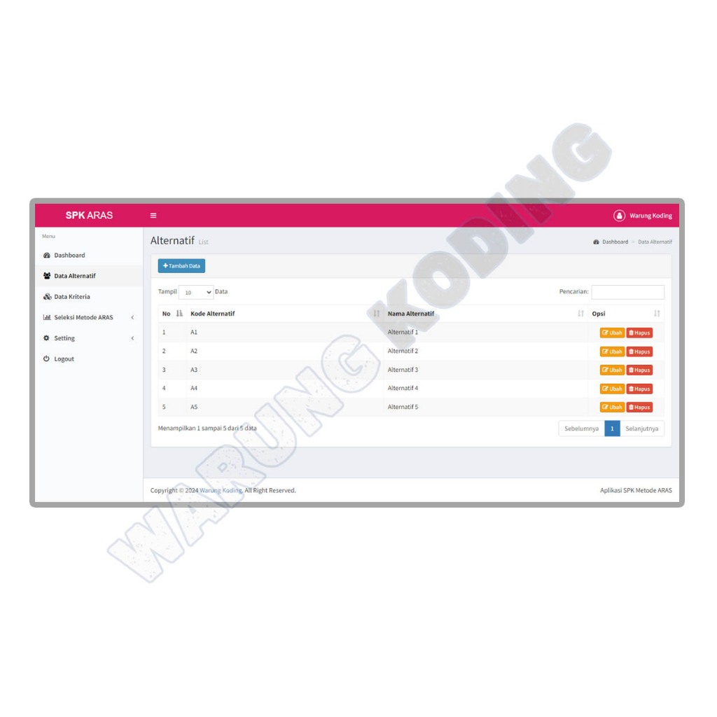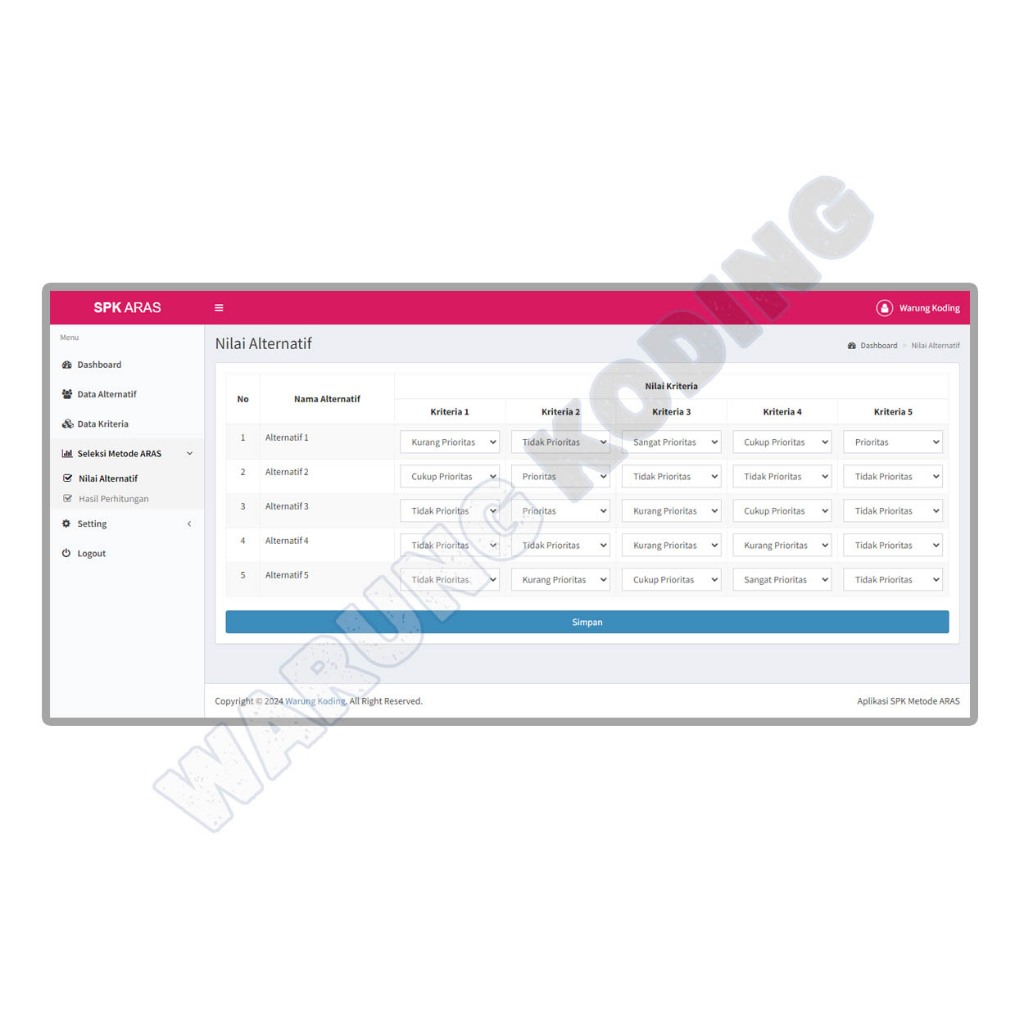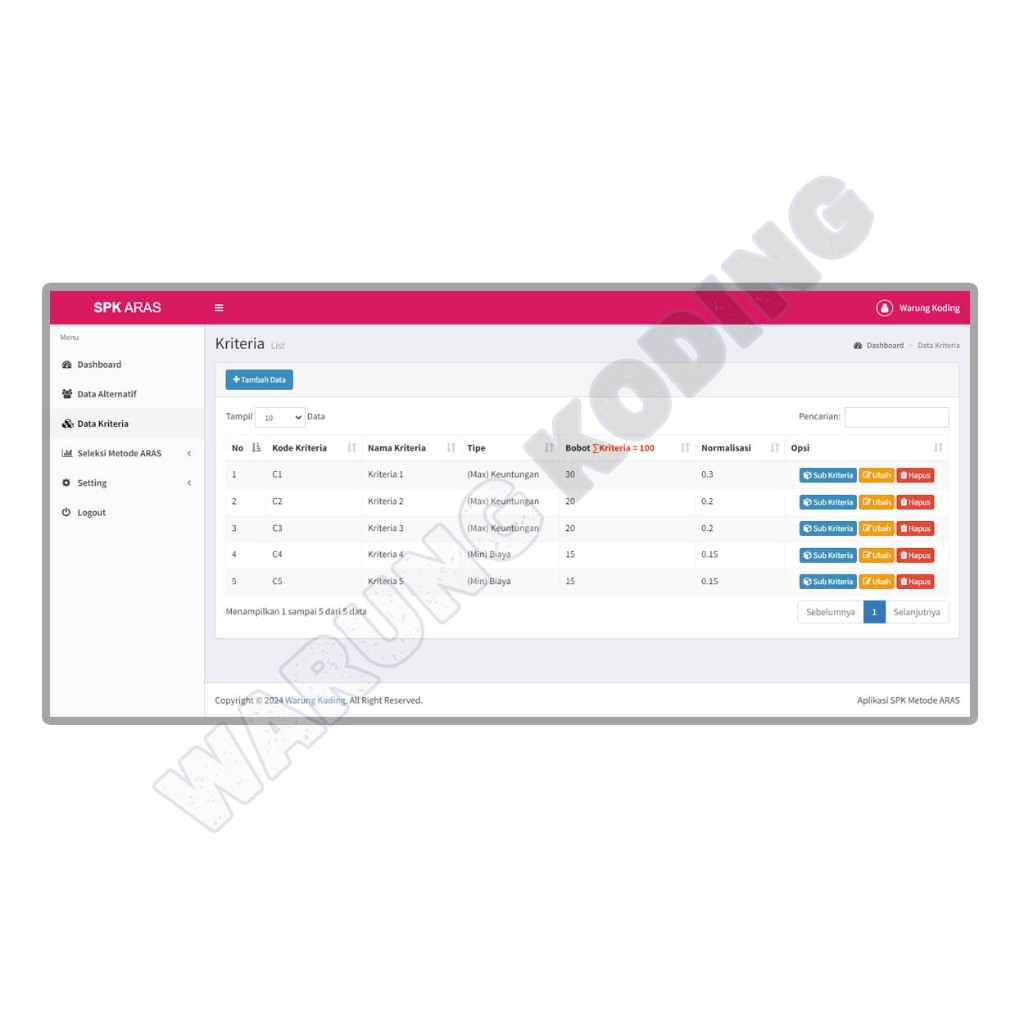 Source Code Aplikasi SPK Metode ARAS dengan PHP dan MySQL