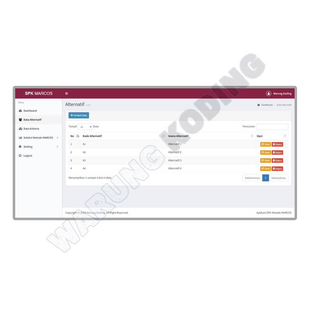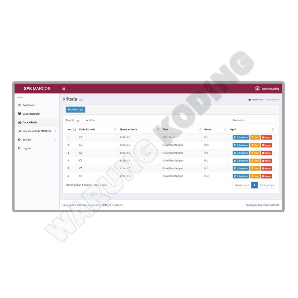 Source Code Aplikasi SPK Metode MARCOS dengan PHP dan MySQL