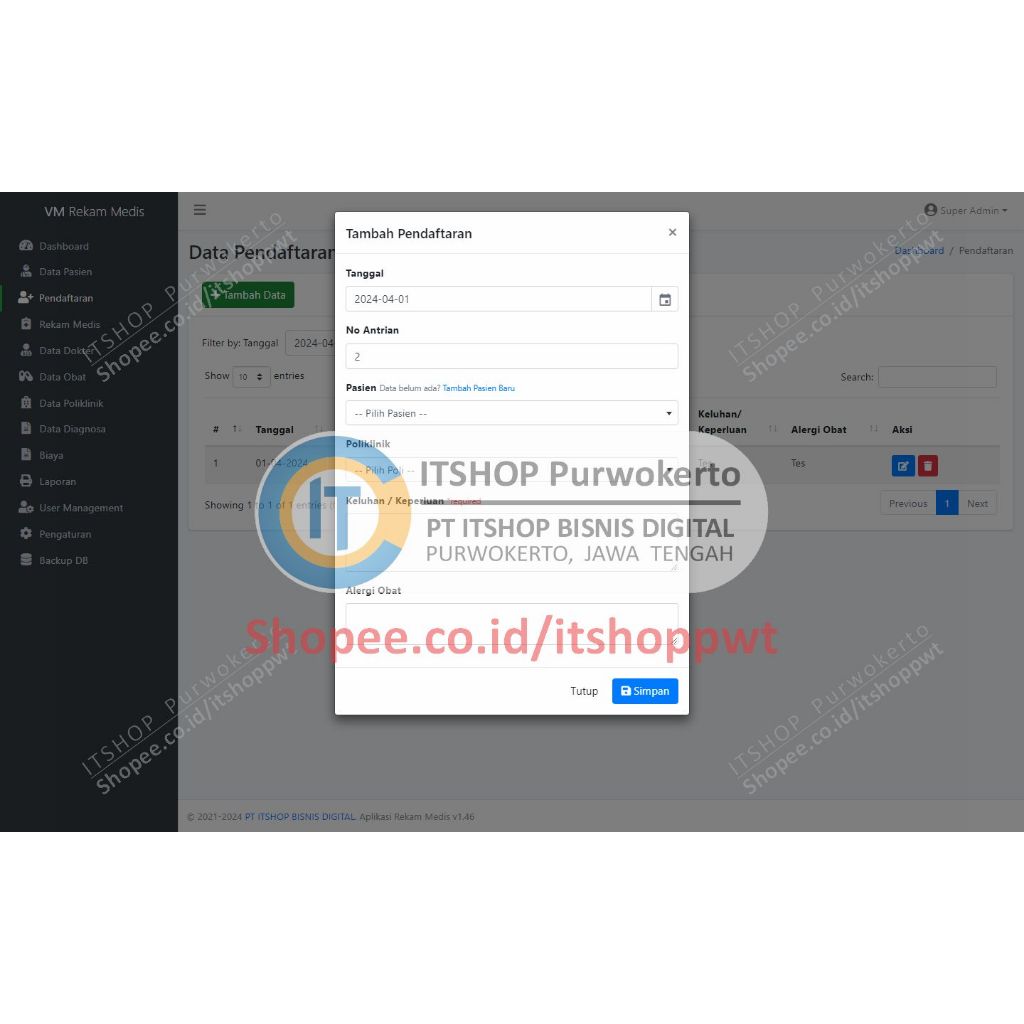 Source Code Aplikasi Web Rekam Medis Klinik Menggunakan CodeIgniter 3