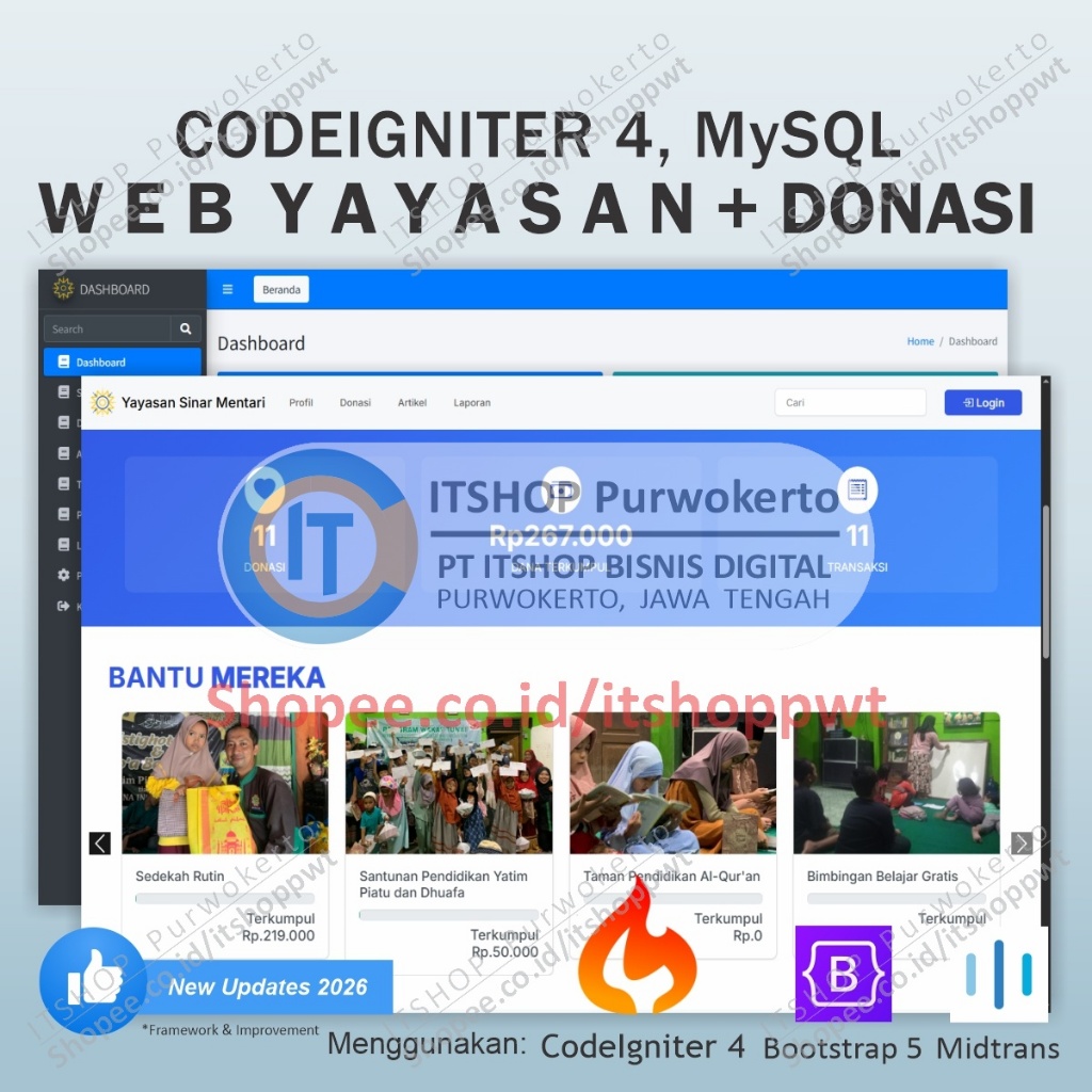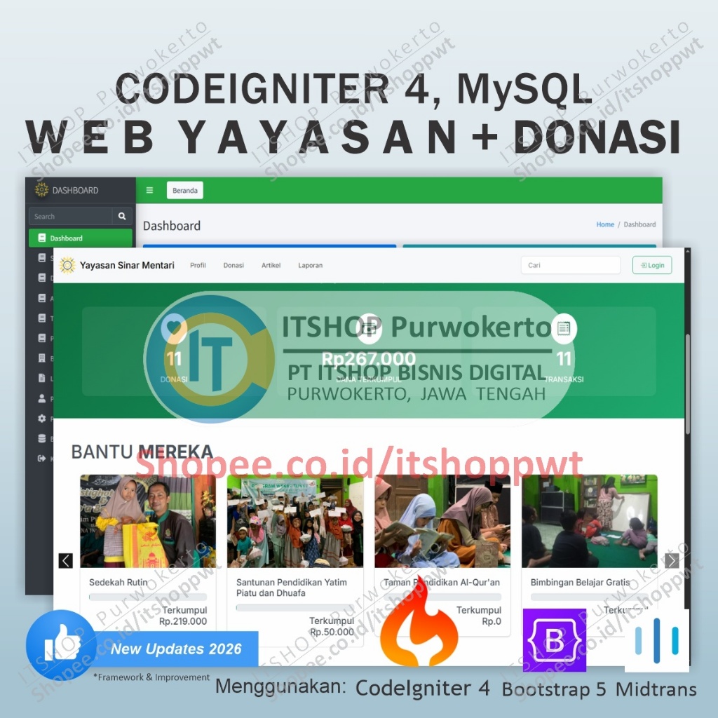 Source Code Aplikasi Web Yayasan Sosial Bisa Donasi pakai Payment Gateway menggunakan Codeigniter 4 CI4 MySQL
