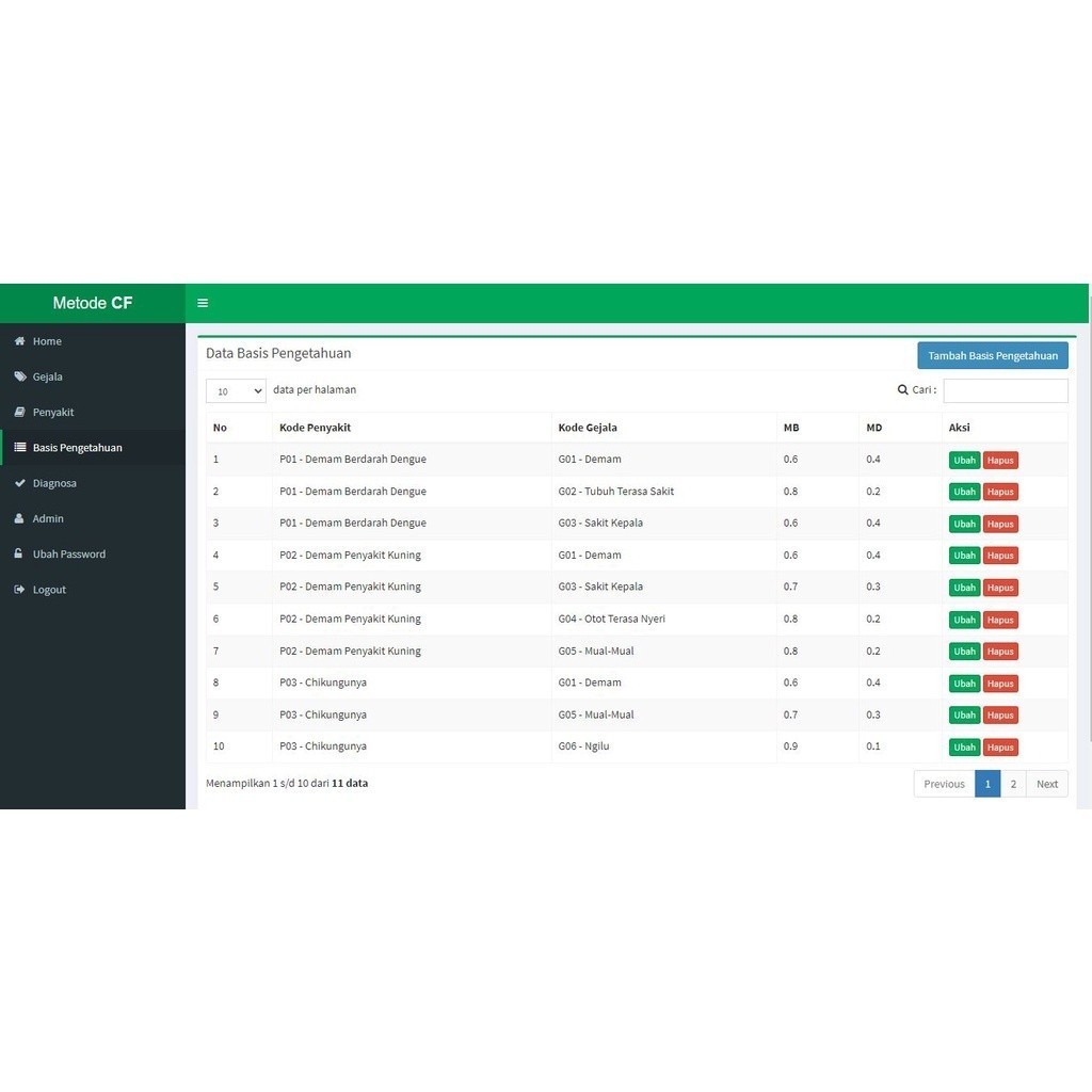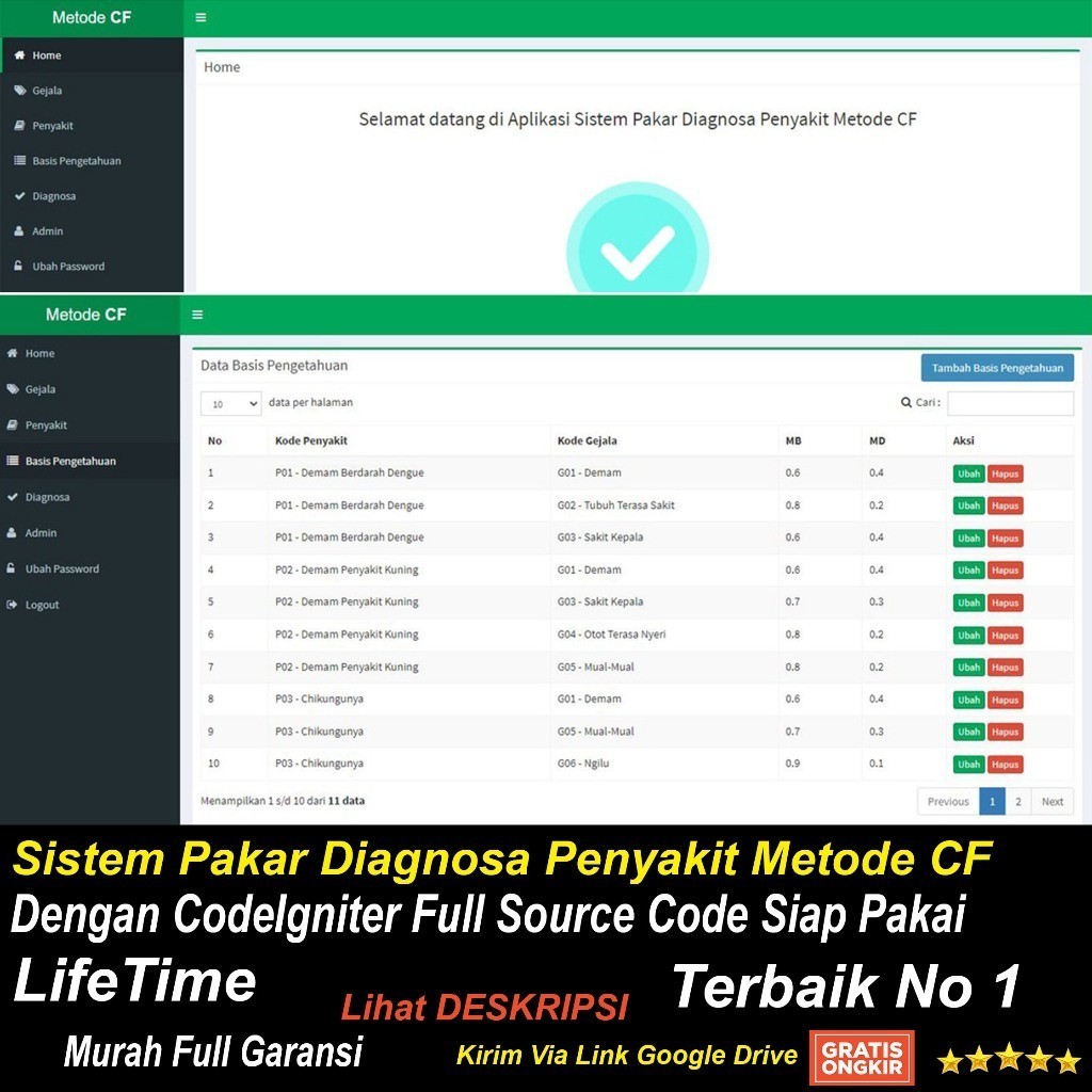 Source Code Sistem Pakar Diagnosa Penyakit Metode CF Dengan CodeIgniter Full Source Code Siap Pakai BGC