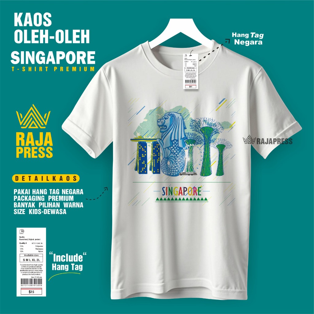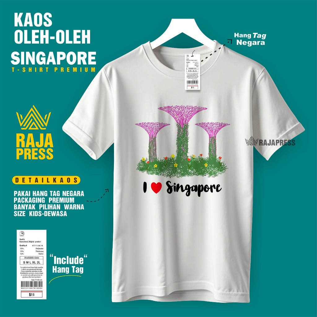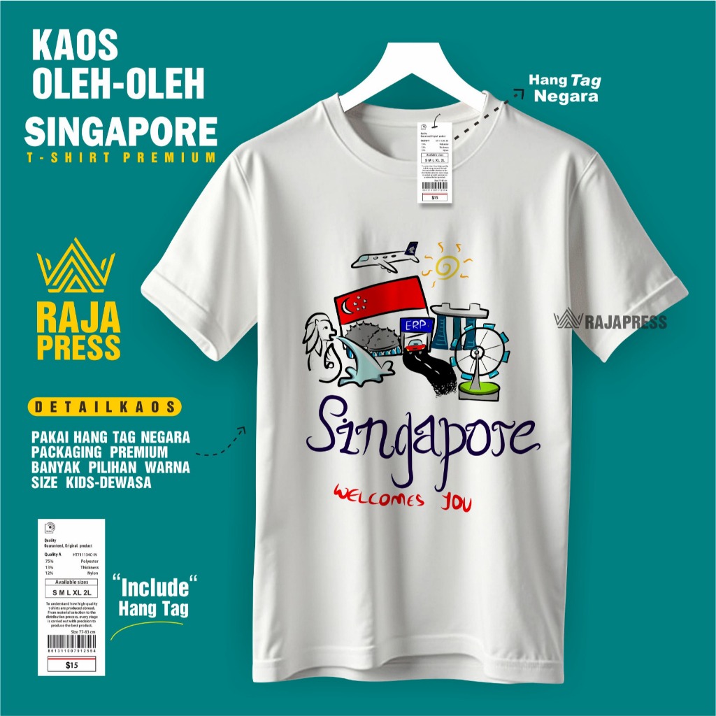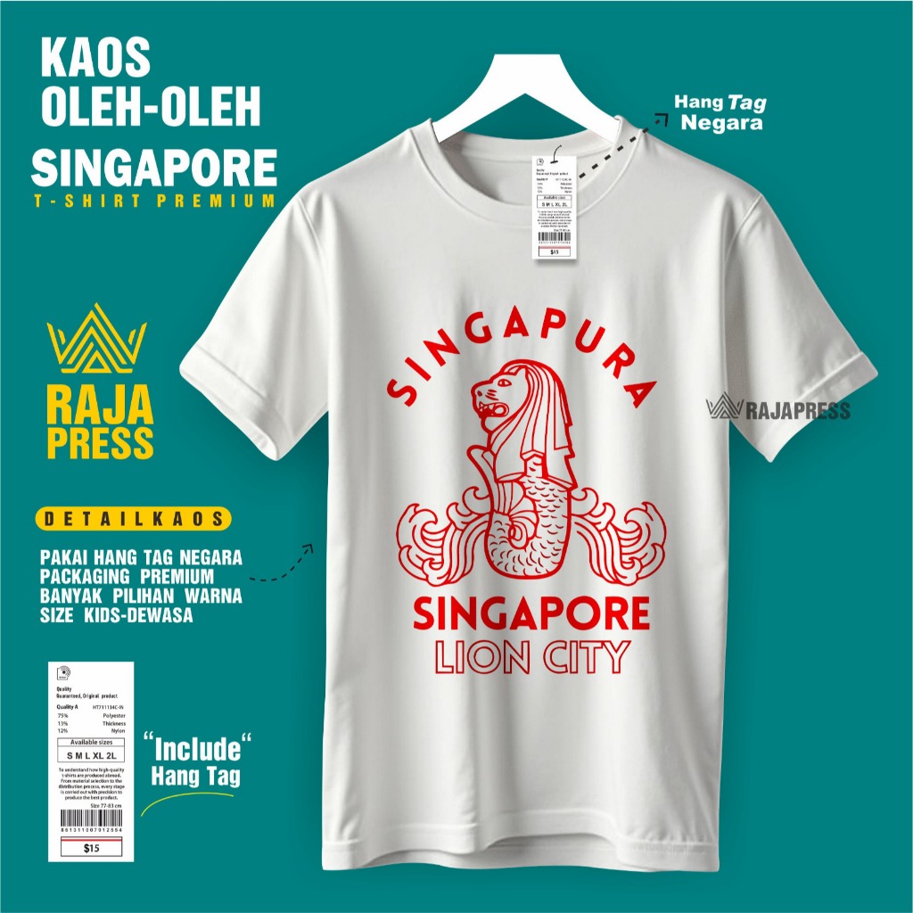 Souvenir Baju Kaos oleh oleh Singapore singapura sg Katun 30s Premium gift ada tag label dewasa anak