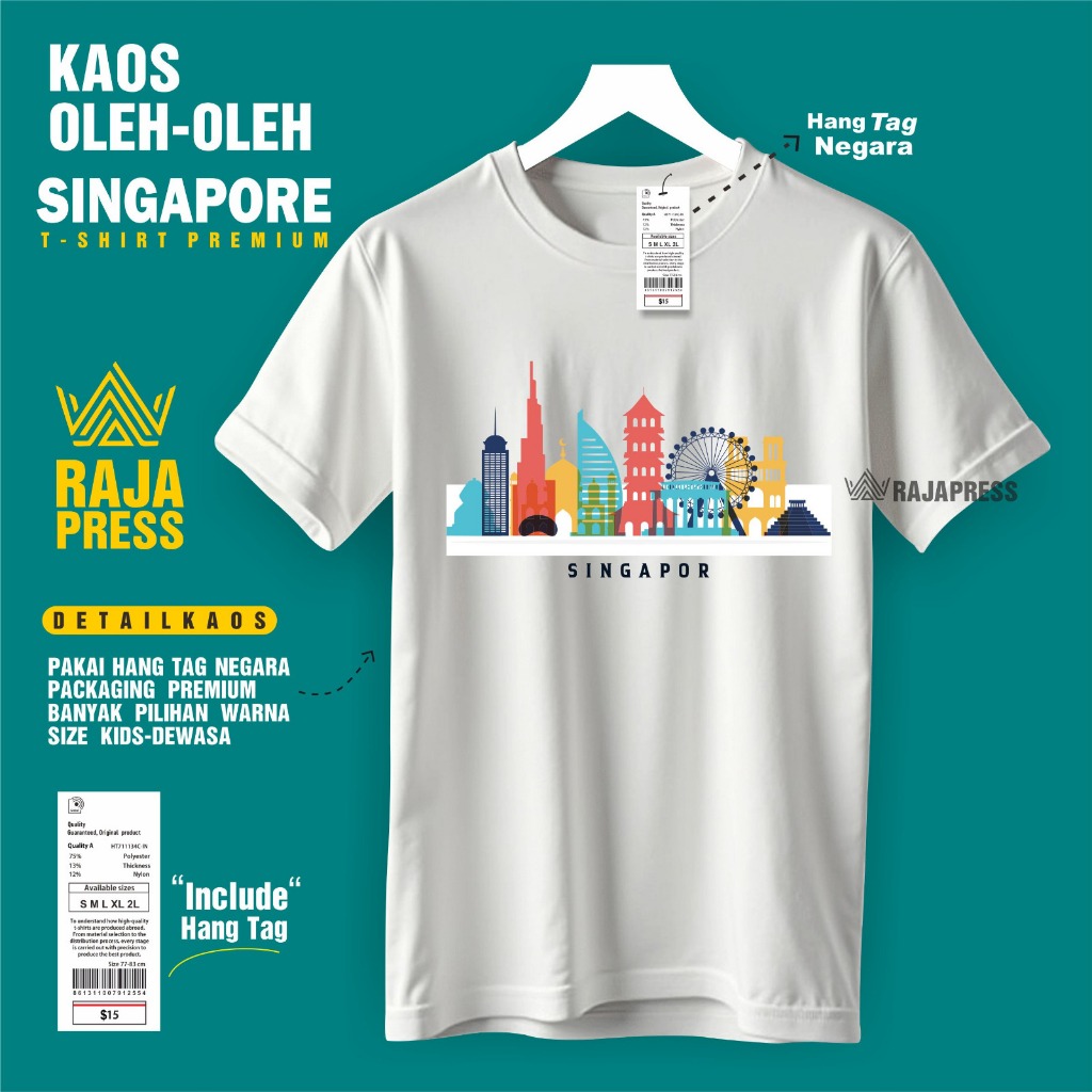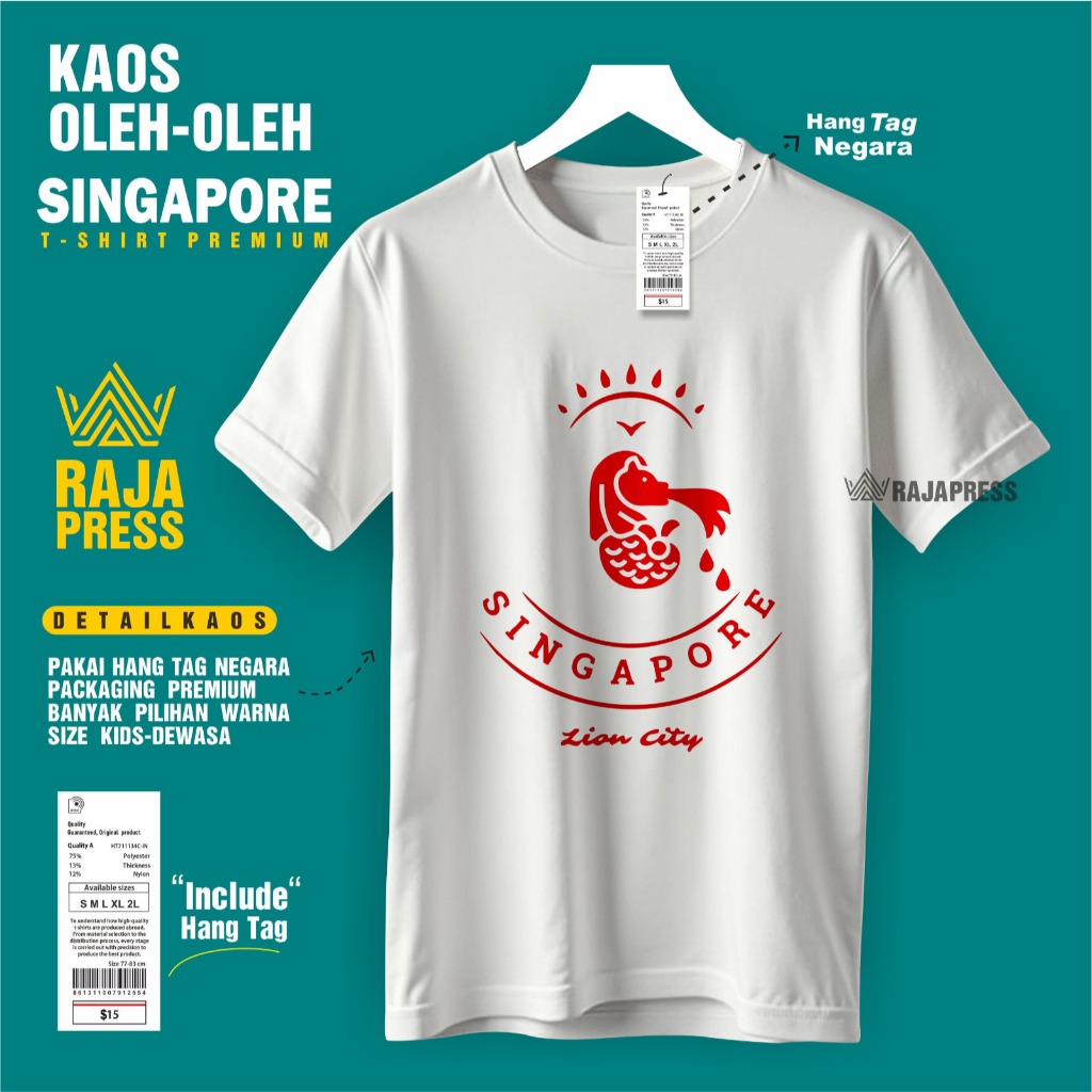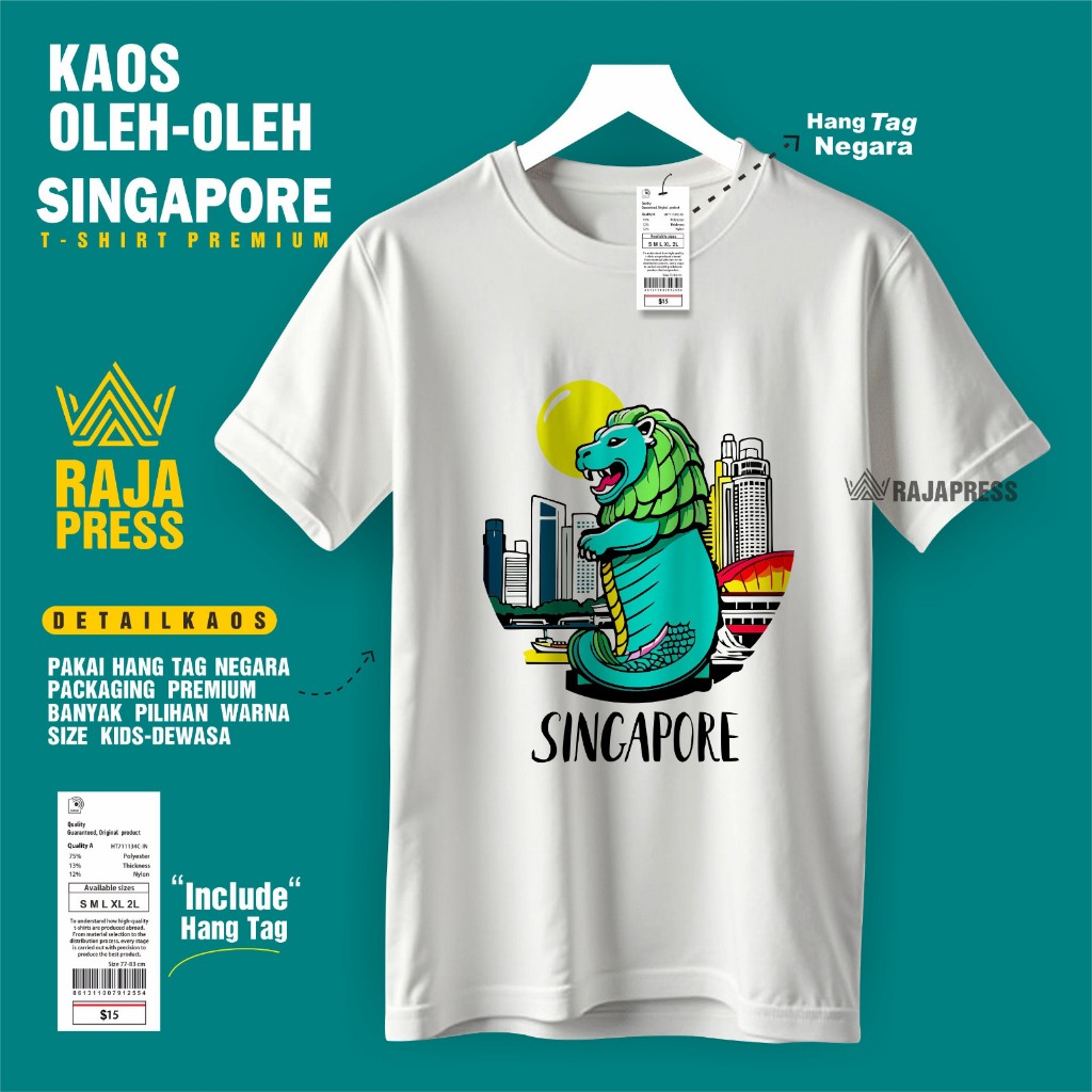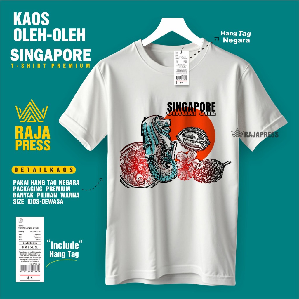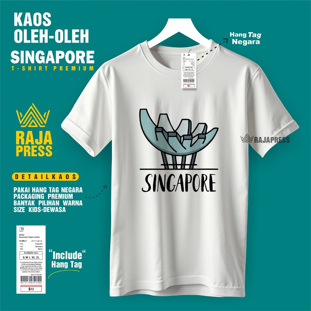 Souvenir Baju Kaos oleh oleh Singapore singapura sg Katun 30s Premium gift ada tag label dewasa anak
