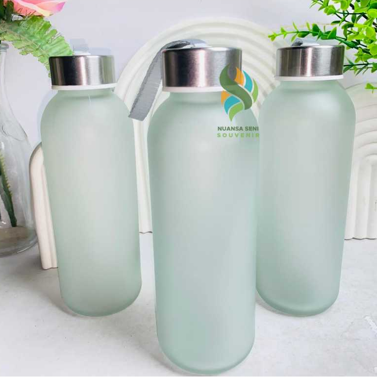 Souvenir Botol Kaca Minum 420ml Botol Kaca Doff Botol Infused Water Termos Kaca Tumbler Polos