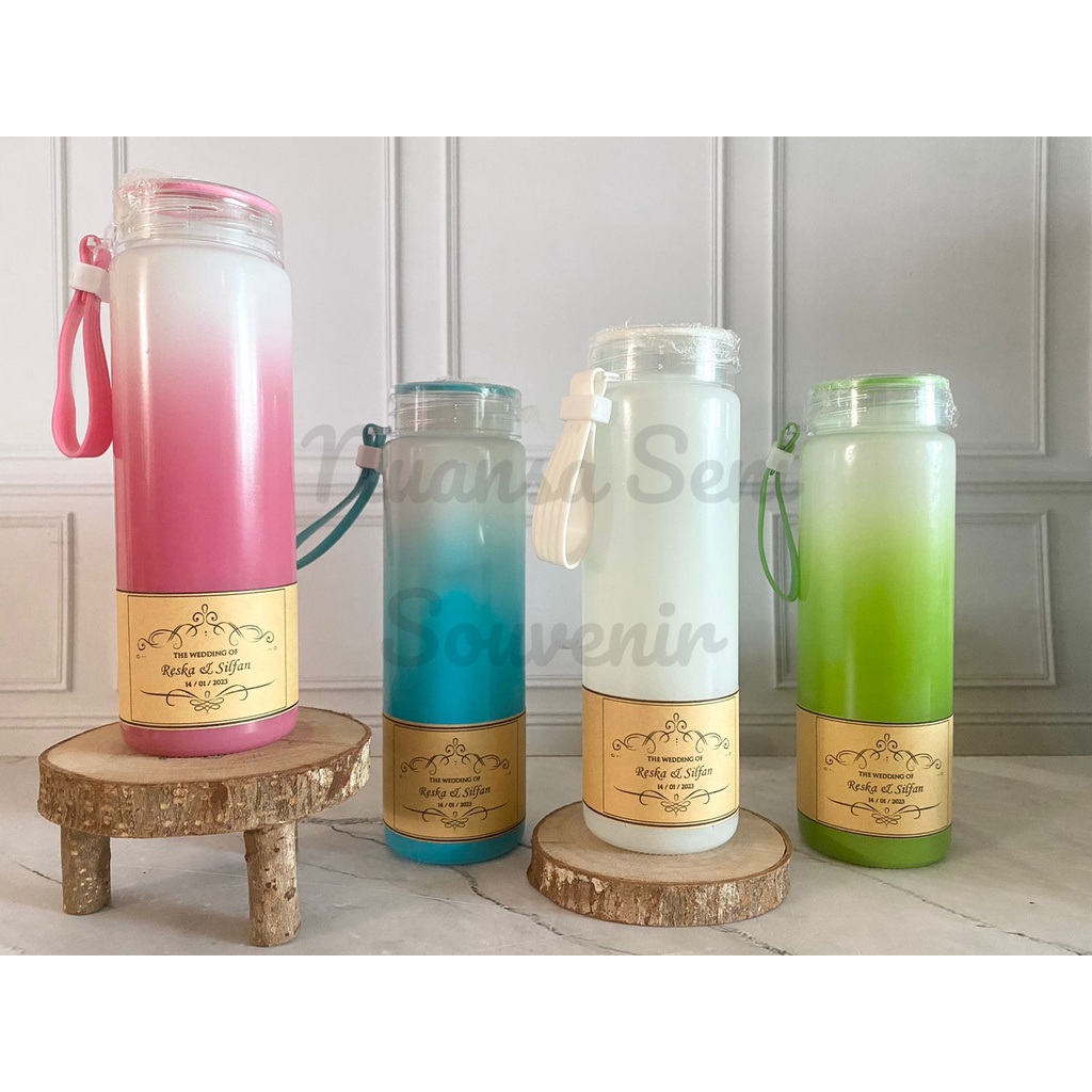 Souvenir Botol Kaca Rainbow Botol Slim Warna Tutup Karet Botol Tumbler Infused Water Kaca Gradasi Warna Bening Polos