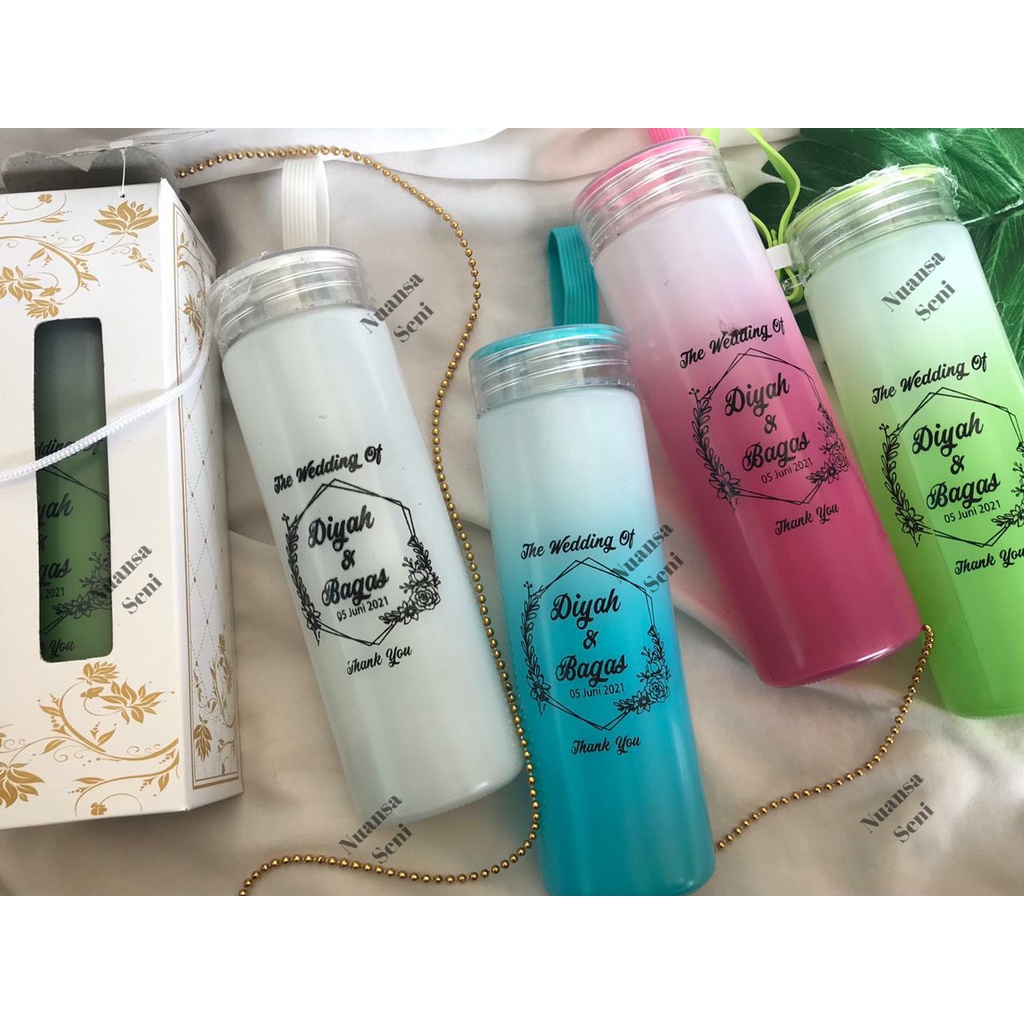 Souvenir Botol Minum Termos Kaca Gradasi Slim Warna Botol Rainbow Tumbler Minum Botol Sablon