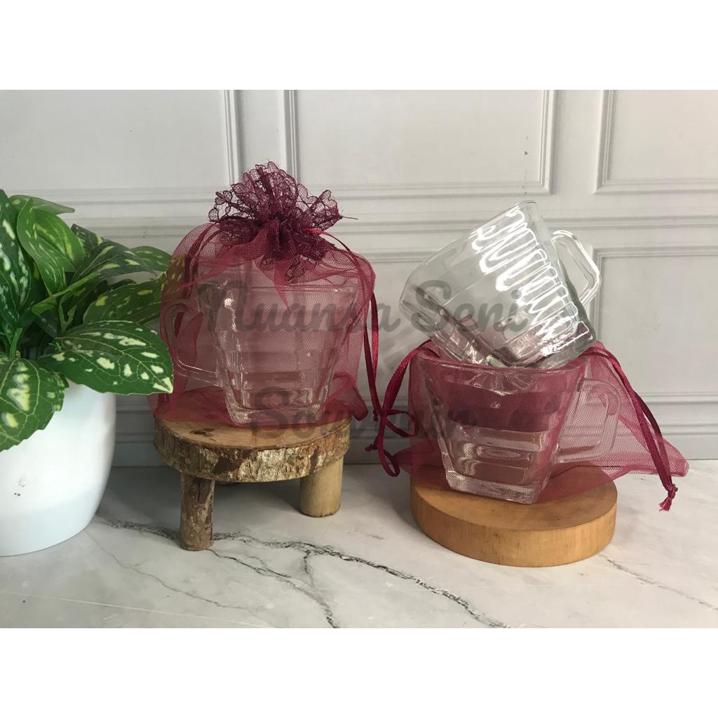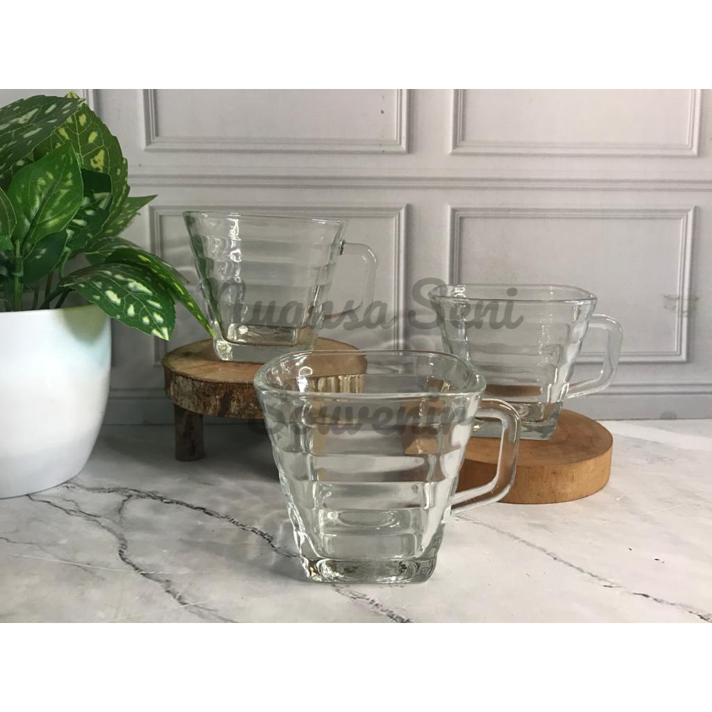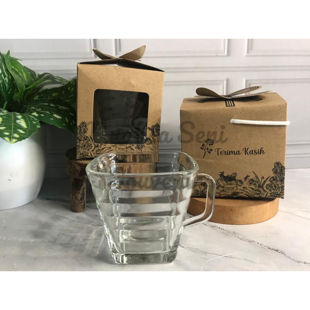 Souvenir Gelas Minum Kaca Kotak Cangkir Quadro Mug Kopi Kaca Gagang Bening Polos