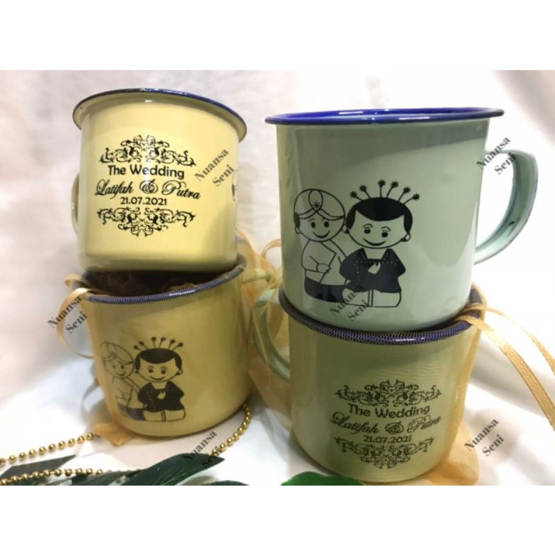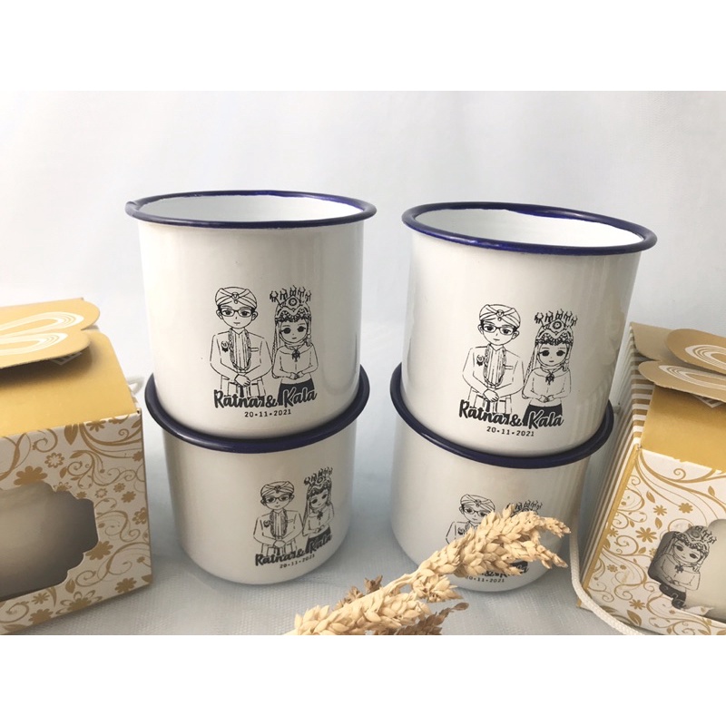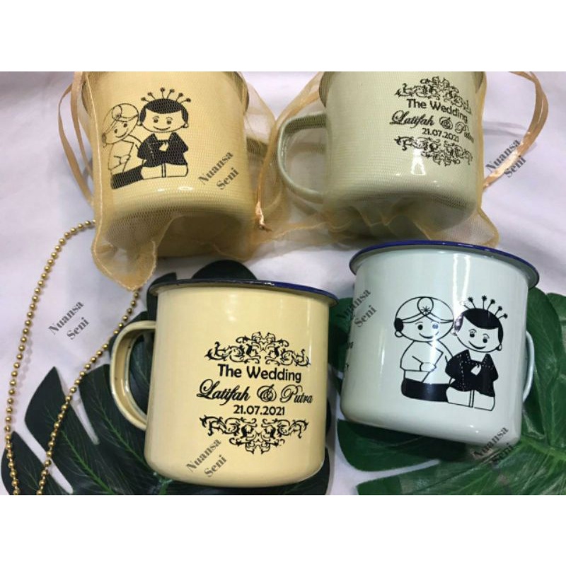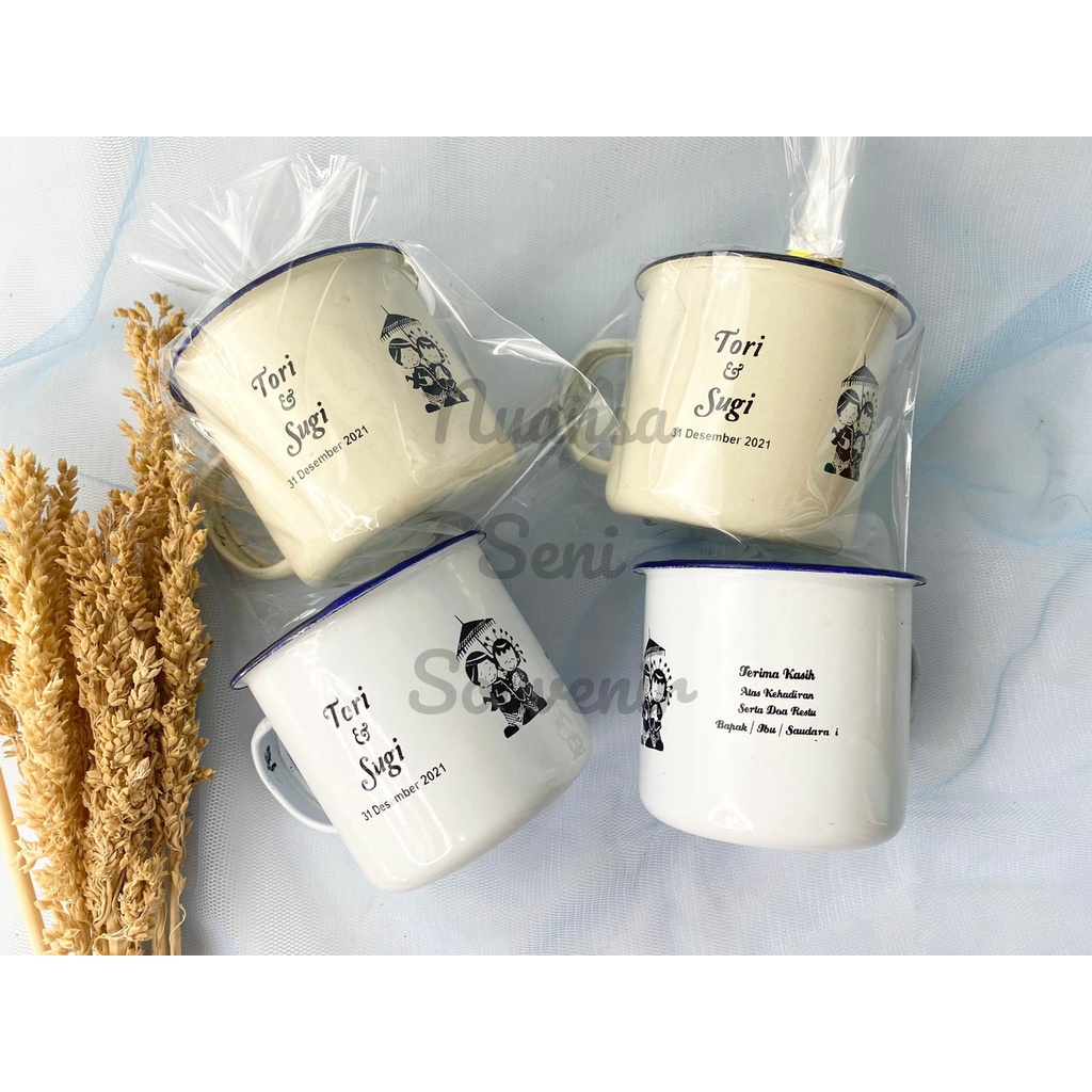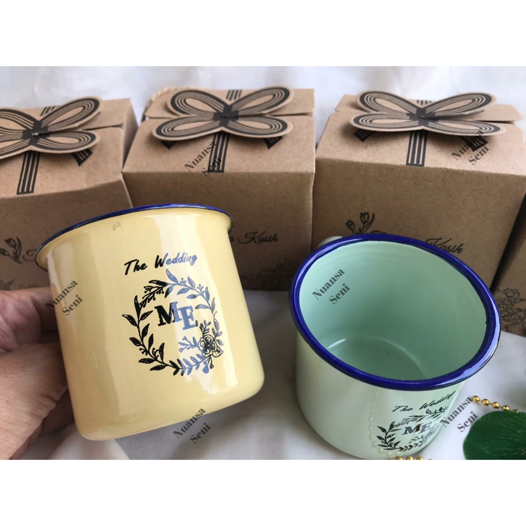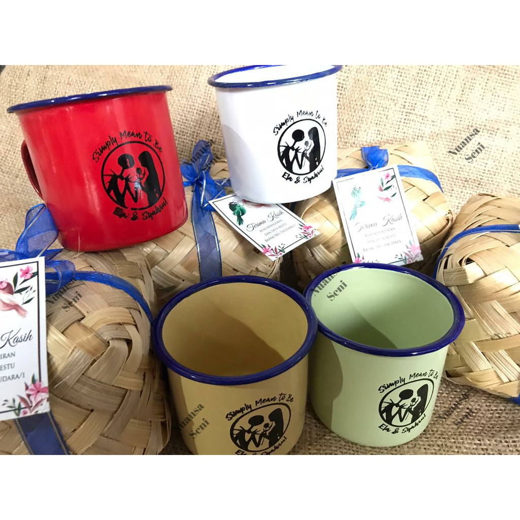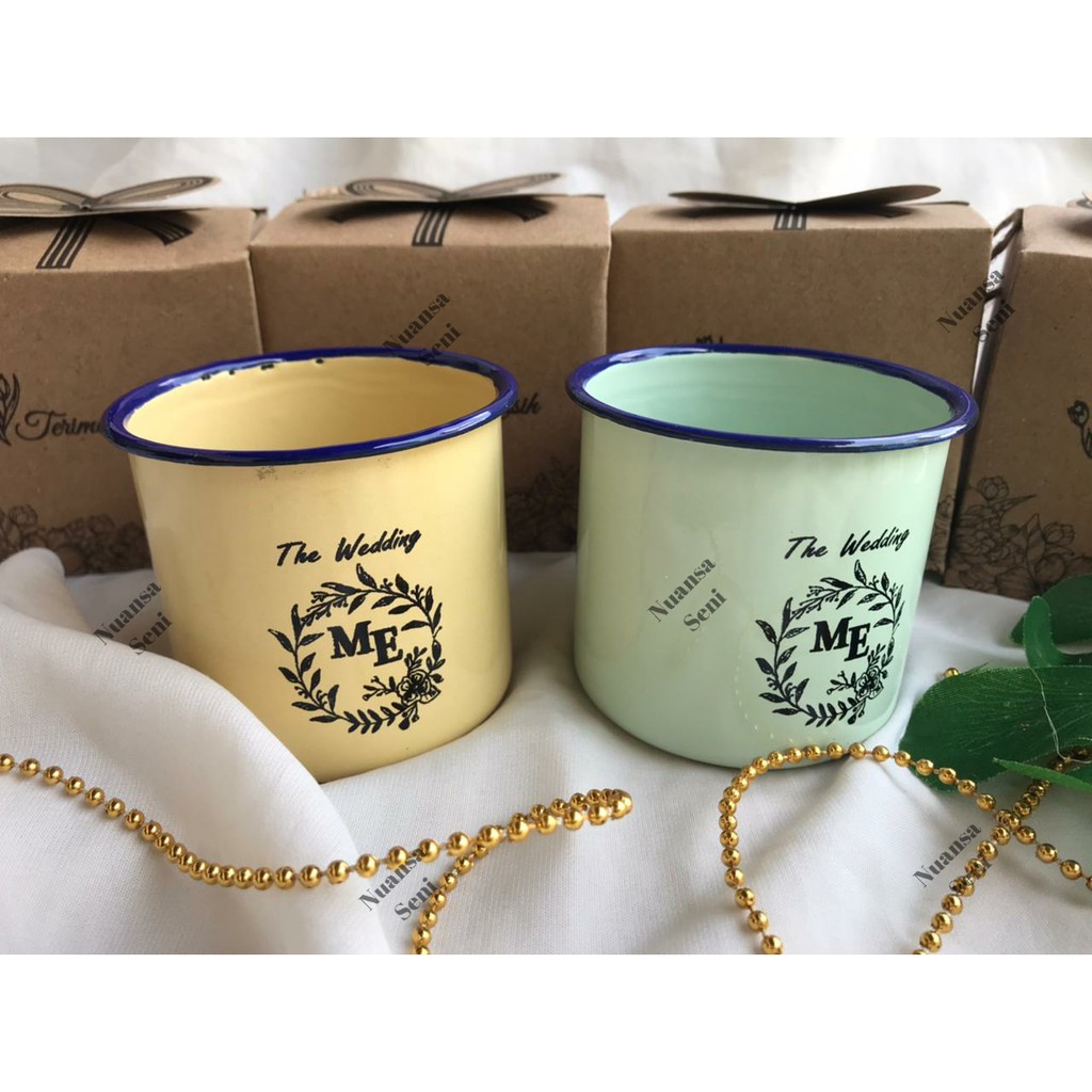 Souvenir Gelas Pernikahan Gelas Enamel Cangkir Minum Tumbler Vintage Mug Kopi Gagang Warna Cup Sablon