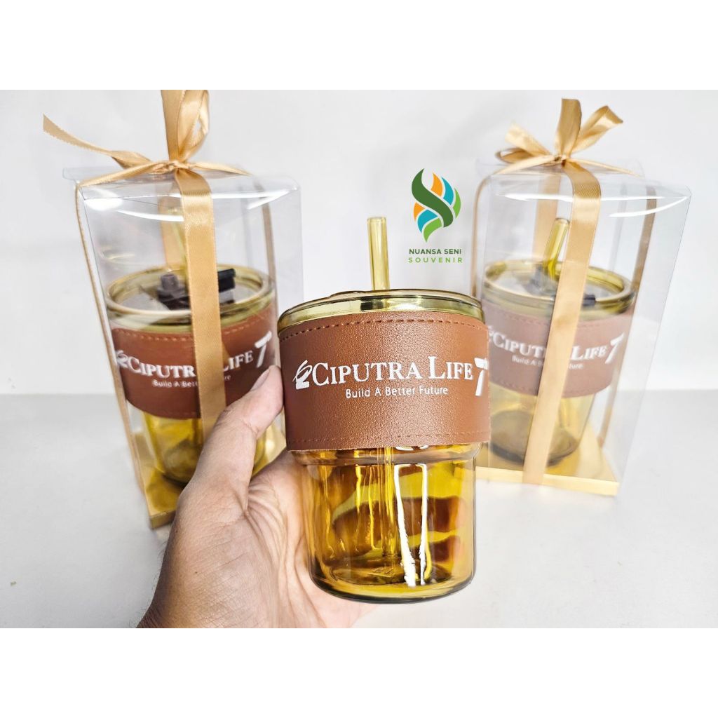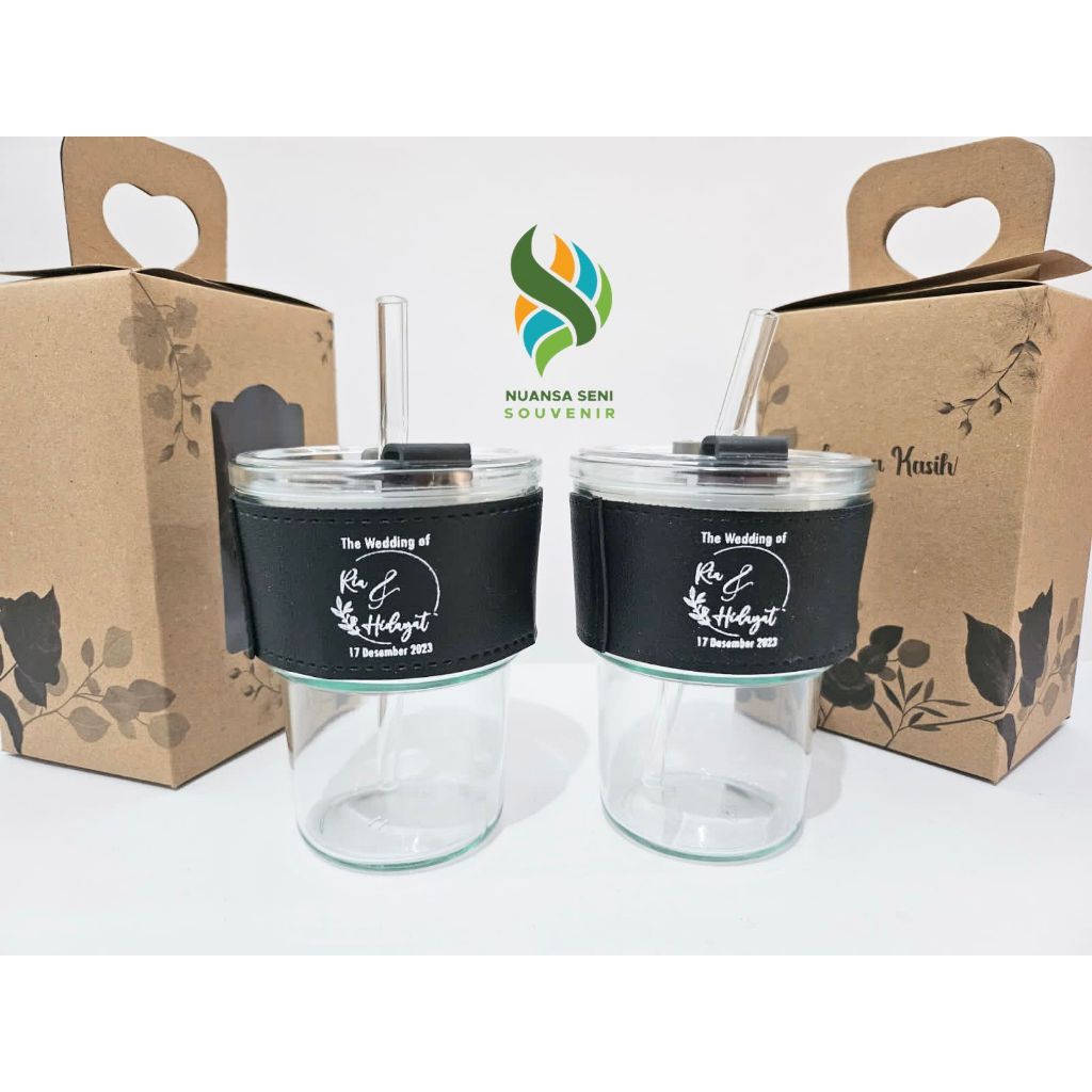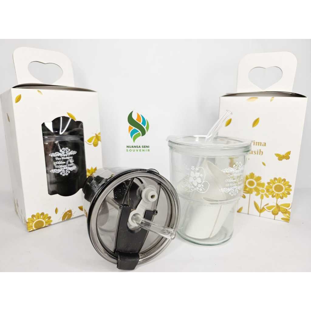 Souvenir Gelas Sedotan Kaca Estetik Tumbler Mug Minum Jus Botol Travel Kaca Sedotan Glass Cup Infused Water Beling Sablon Custom