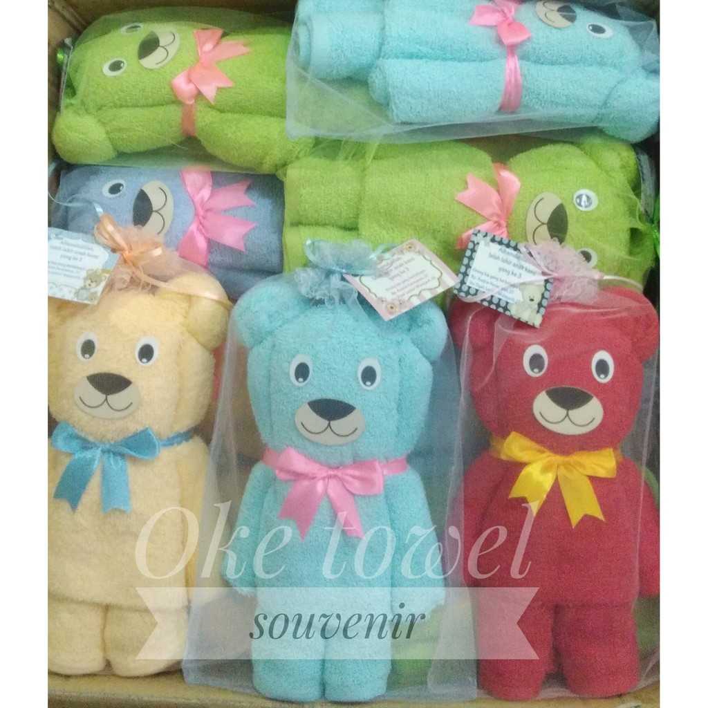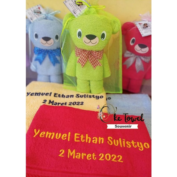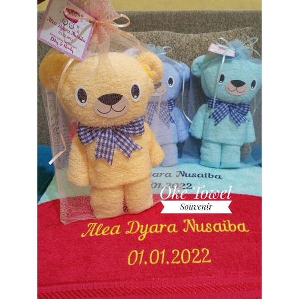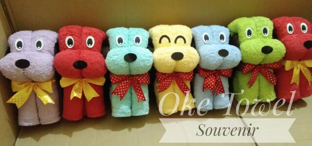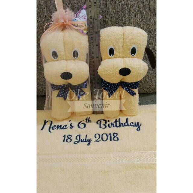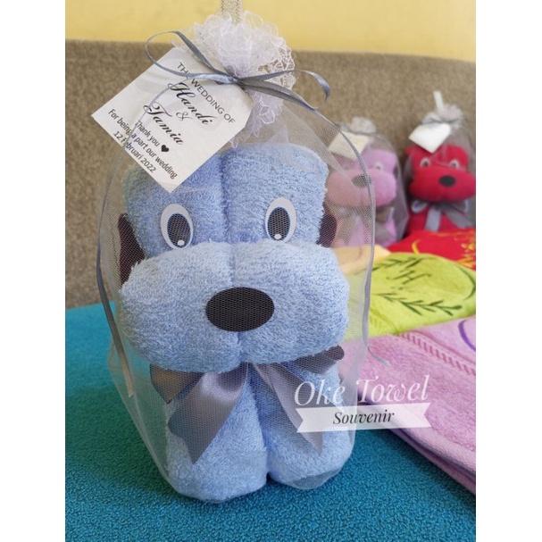 Souvenir Handuk mandi 50x100cm Bntuk anjing dan beruang lucu (bordir+kemasan tile)