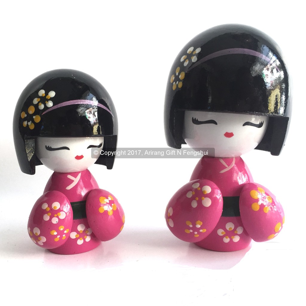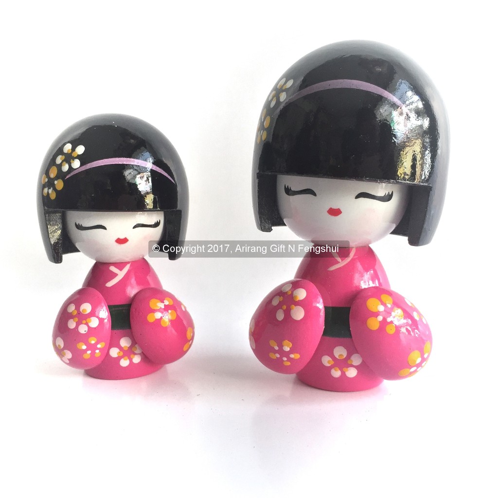 Souvenir Miniatur Boneka Kokeshi Ibu dan Anak Pink (Perpasang)