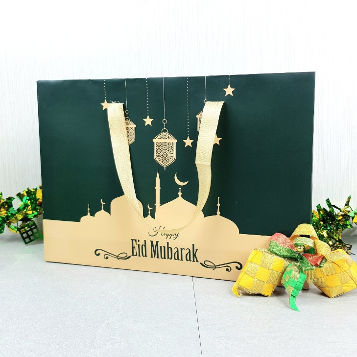 Souvenir Paperbag Kado Idul Fitri Hamper Lebaran uk 32 x 22 x 7 cm cocok untuk Baju, Sarung, Mukena dll (Hijau)