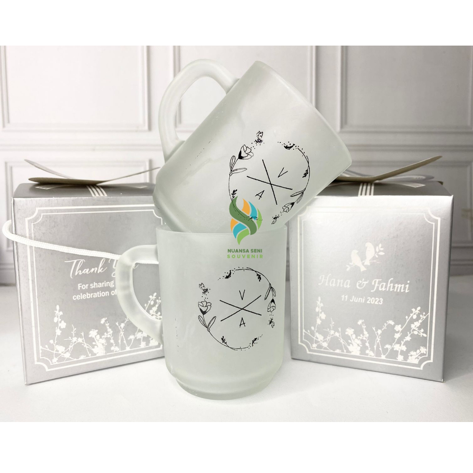 Souvenir Pernikahan Gelas Minum Gelas CG Royal Cangkir Kopi BBC Gagang Kaca Gelas Doff Sablon