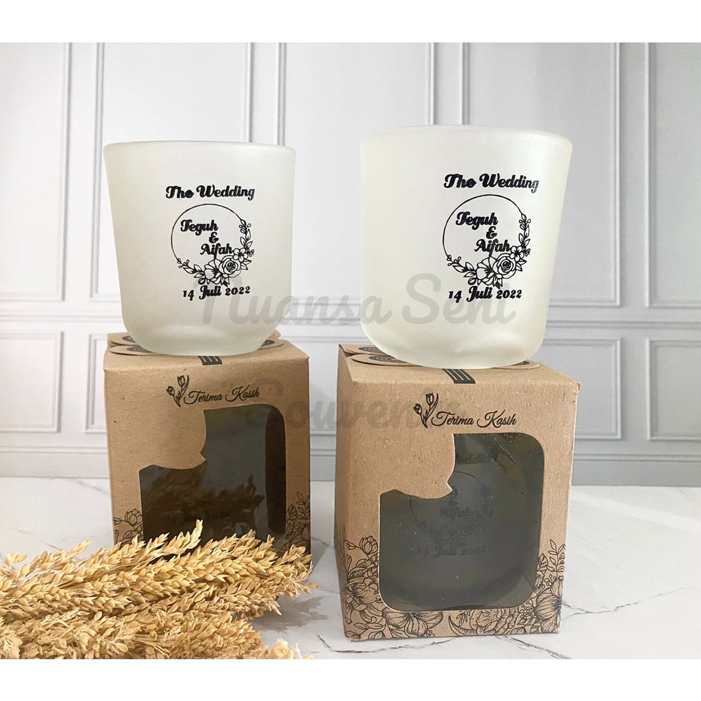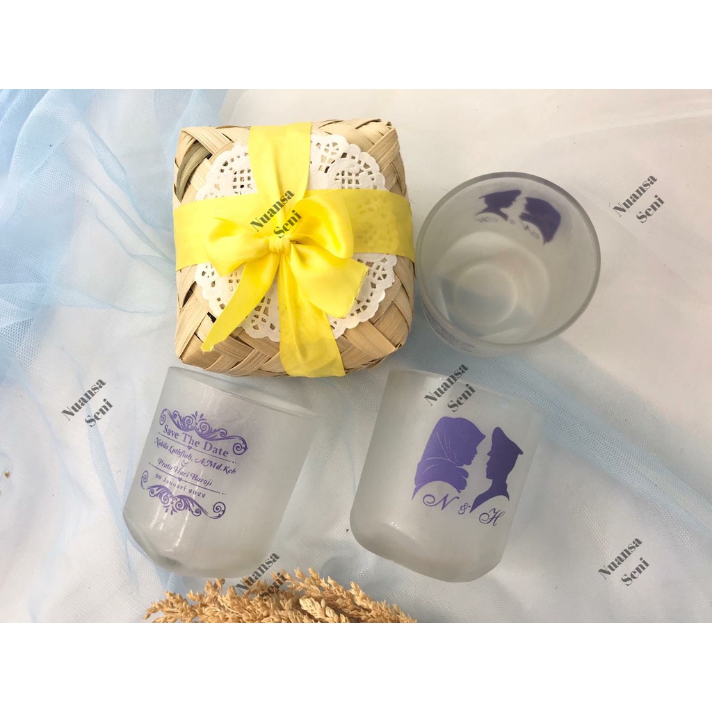 Souvenir Pernikahan Gelas Minum Gelas Mug Cangkir Kopi Gelas PSP Gelas Kaca Doff Sablon