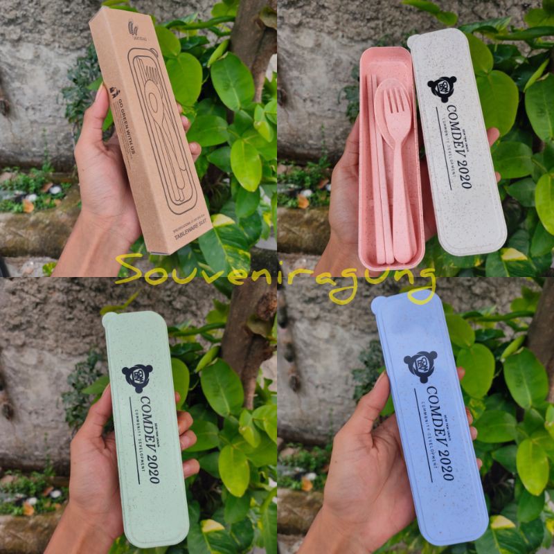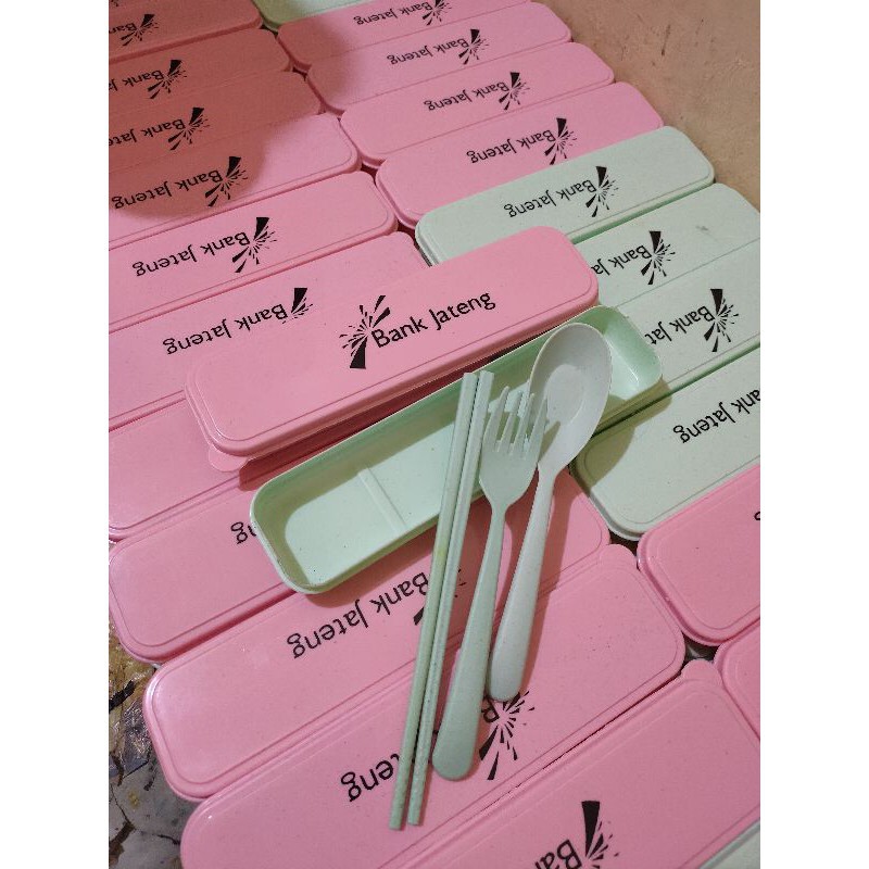 Souvenir Sendok Set BOX Custom sablon nama dan logo